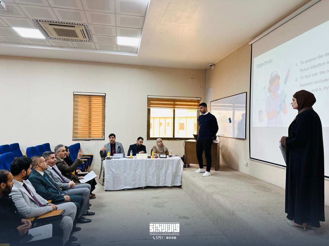 وفي كلمته، أكد الأستاذ الدكتور الجبوري على أهمية تطوير مهارات البحث العلمي لدى الطلبة، مشيداً بالجهود المبذولة في اختيار موضوعات بحثية تعكس احتياجات وتحديات مهنة التمريض في المجتمع. كما أعرب عن دعمه الكامل للطلبة في إتمام بحوثهم وتقديمها بالشكل الأمثل.