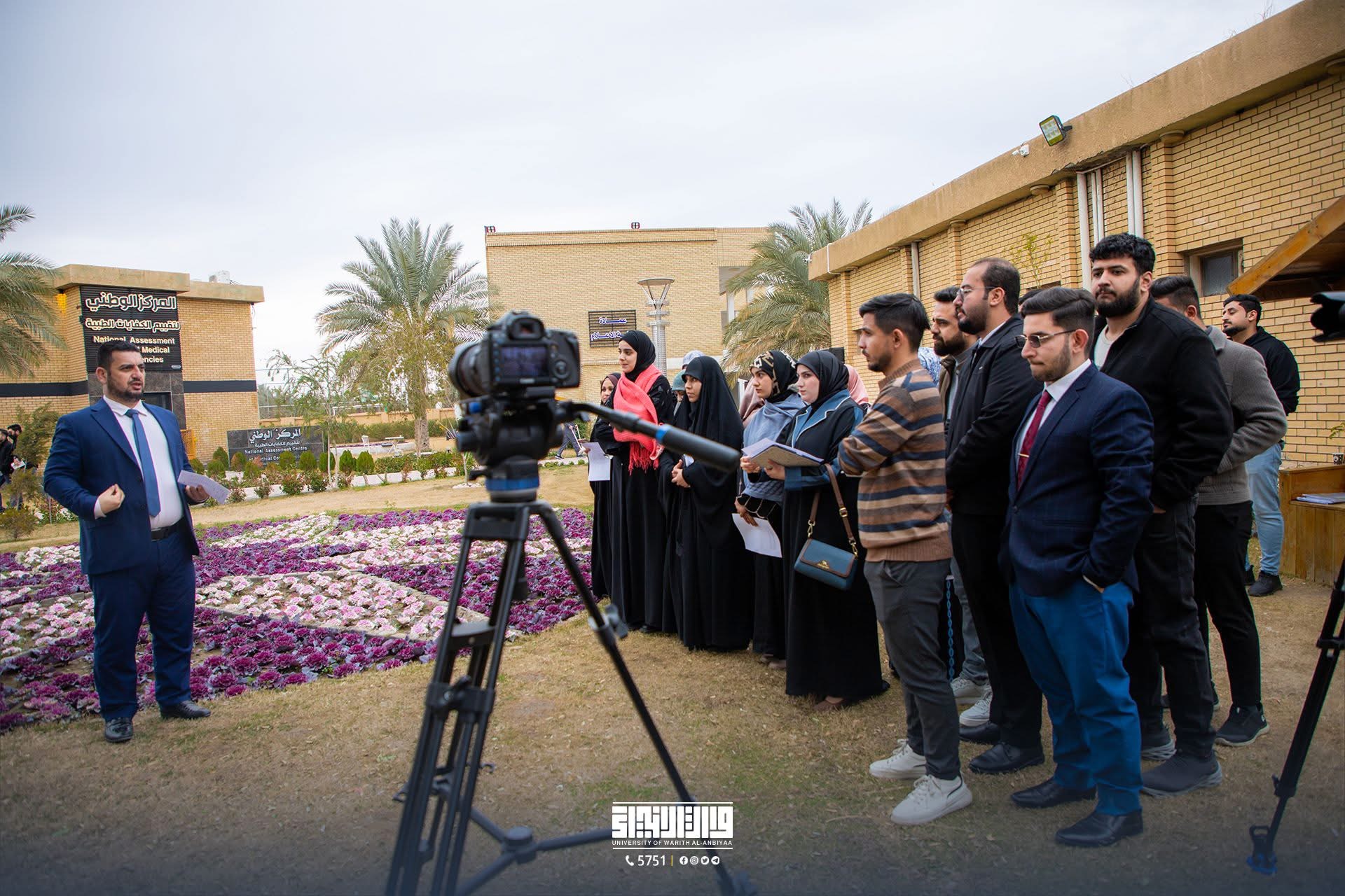 في إطار تعزيز المهارات العملية لطلبة كلية الإعلام في جامعة وارث الانبياء (عليه السلام)، نظّمت الكلية بالتعاون مع قناة القرآن الكريم ضمن مجموعة قنوات كربلاء الفضائية ورشًا تدريبية ميدانية لطلبة المرحلة الثانية، بإشراف أساتذة القسم.
