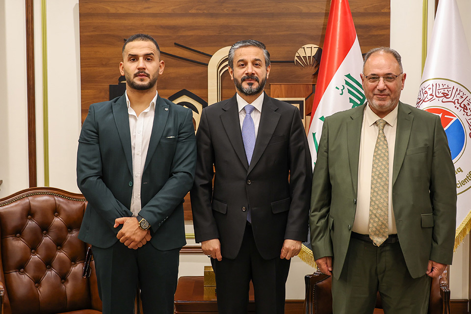 كرم وزير التعليم العالي والبحث العلمي الدكتور نعيم العبودي الطالب عقيل زيد نبيل أحد نزلاء سجن الكرخ المركزي الذي أنهى دراسته ضمن برنامج تعليم السجناء الذي تتبناه وزارة التعليم العالي والبحث العلمي بالتنسيق مع وزارة العدل وتنفذه جامعة تكنولوجيا المعلومات والاتصالات في إطار سياسة دمج النزلاء في المجتمع عبر بوابة التعليم.
