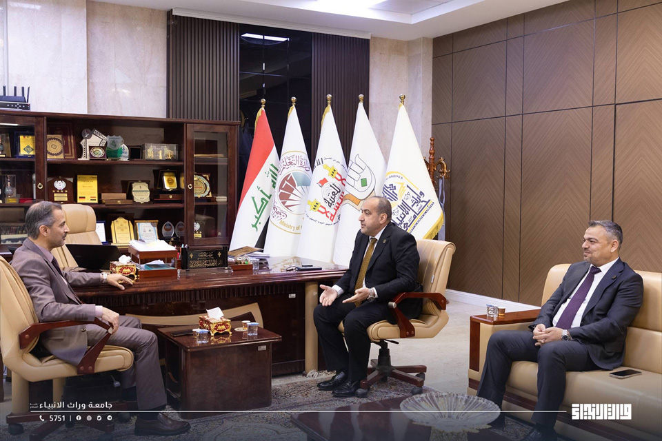 استقبل رئيس جامعة وارث الأنبياء (عليه السلام)، الأستاذ الدكتور إبراهيم سعيد الحياوي، في مكتبه، رئيس جامعة السبطين للعلوم الطبية، الأستاذ الدكتور رحيم مهدي رحيم، وذلك في زيارة رسمية هدفت إلى تعزيز آفاق التعاون الأكاديمي والعلمي المشترك بين الجامعتين.