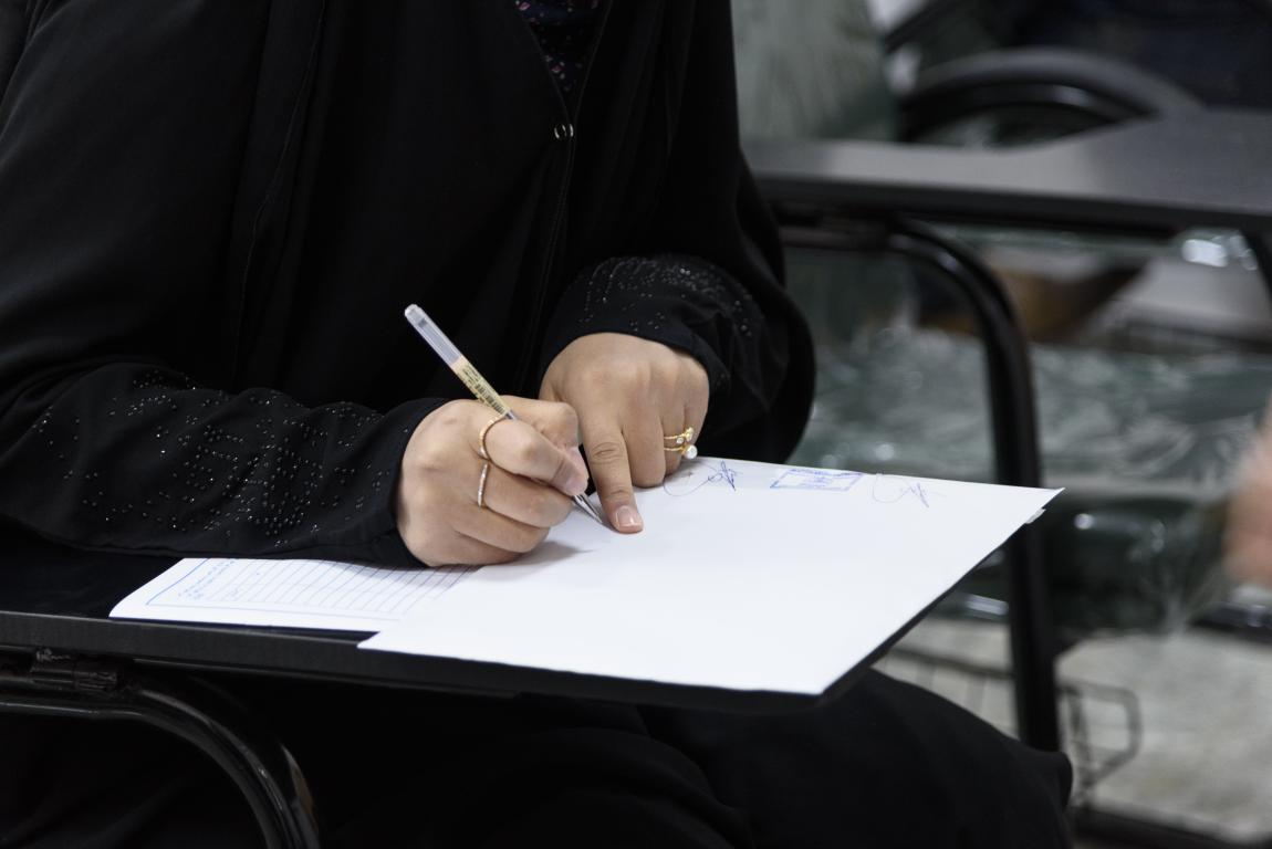 طلبة قسم هندسة تقنيات الروبوتات والذكاء الاصطناعي خلال تأدية امتحانات التقويم المستمر للفصل الدراسي الثاني.