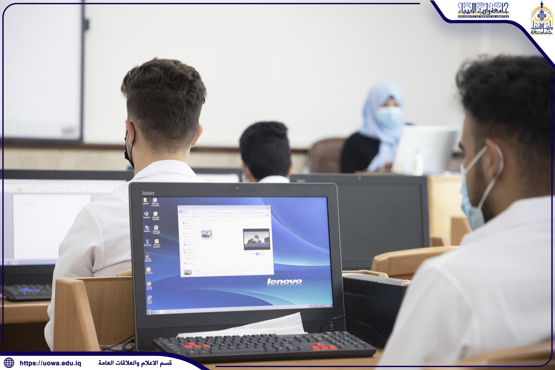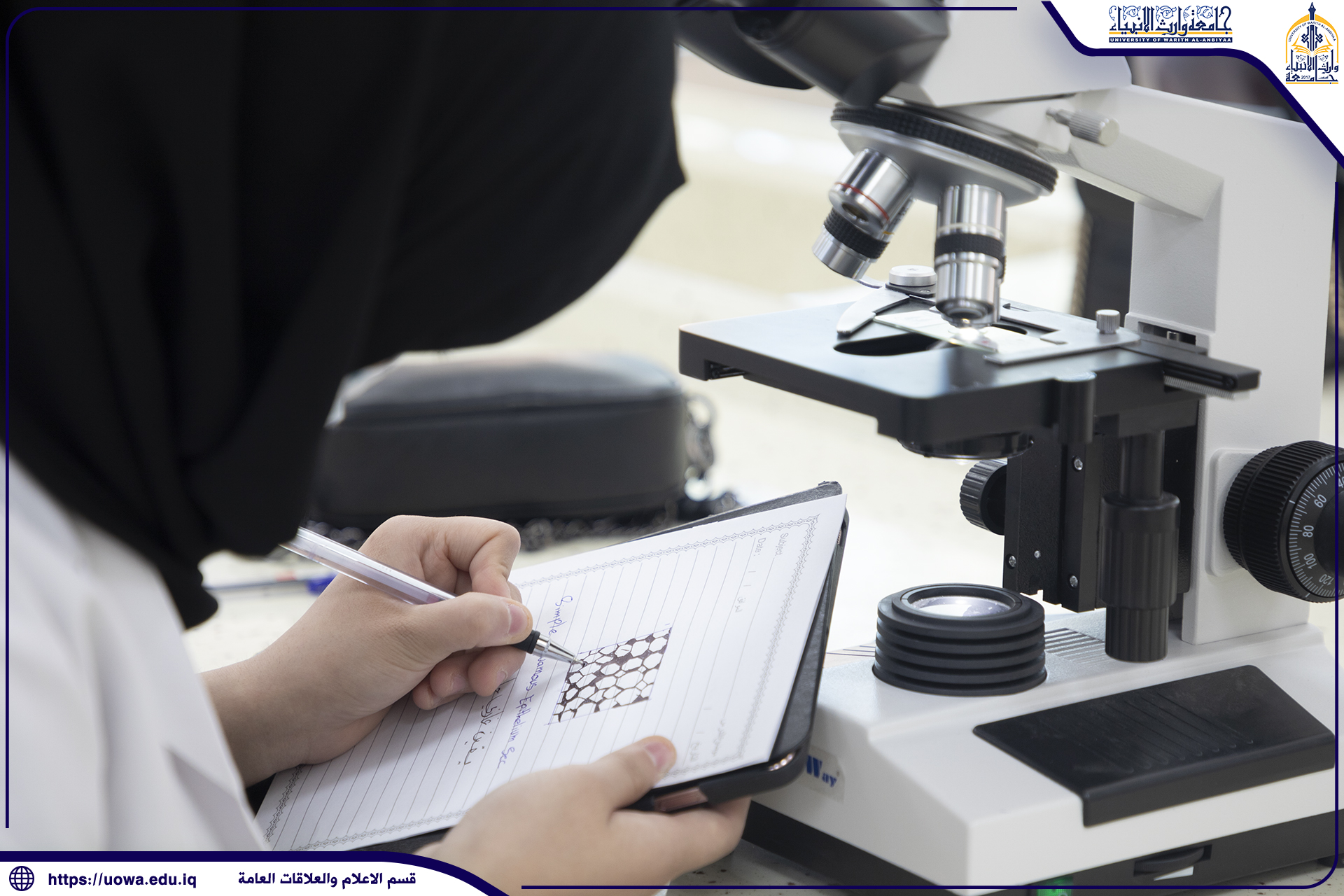 طلبة كلية الطب في جامعة وارث الأنبياء(عليه السلام) يتلقون محاضراتهم في المختبرات العلمية ، وأداء بعض التجارب الطبية المختبرية بإشراف مباشر من قبل عميد الكلية الأستاذ الدكتور فالح البياتي والسادة اعضاء هيئة التدريس ، حيث حرصت رئاسة الجامعة على توفير افضل المعدات والاجهزة المختبرية الحديثة للتدريس العملي في الكلية، مع التأكيد على الإلتزام بالاجراءات الوقائية الصحية وارتداء الكمامات للوقاية من عدوى الجائحة.