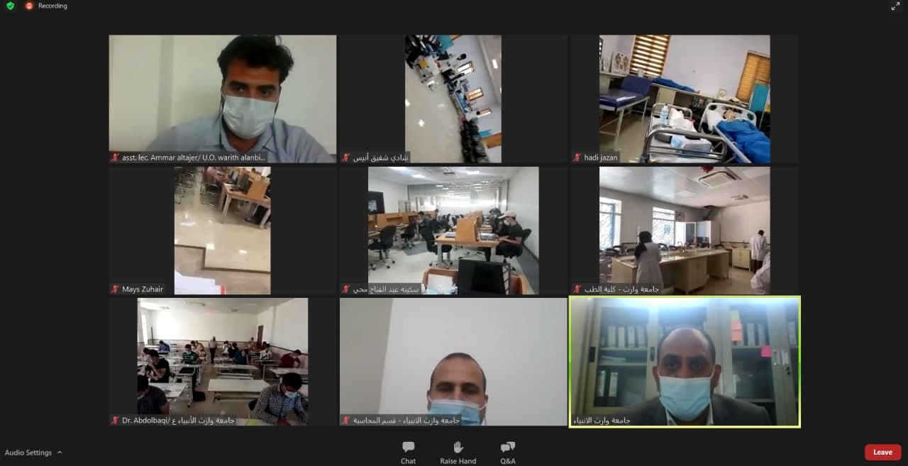 زار الفريق الوزاري المختص بمتابعة الامتحانات النهاية الالكترونية والحضورية جامعة وارث الانبياء (عليه السلام) يوم الاثنين الموافق 2021/7/12 وذلك للاطلاع على سير الامتحانات النهائية في الجامعة خلال الزيارة الكترونيا تم اللقاء مع السيد رئيس الجامعة الدكتور عباس الدعمي و مسؤول التعليم الالكتروني الدكتور حيدر الغانمي وحضر في الاجتماع عدد من التدريسيين من الكليات والاقسام التي تؤدي الامتحان في ذلك الوقت. تم خلال الزيارة تعريف الفريق الوزاري بالاجراءات والتدابير الوقائية التي اتخذتها الجامعة للوقاية من انتقال الاصابات كما تجولت الوزارة الكترونيا في القاعات الامتحانية العملية و التحدث مع عدد من الطلبة