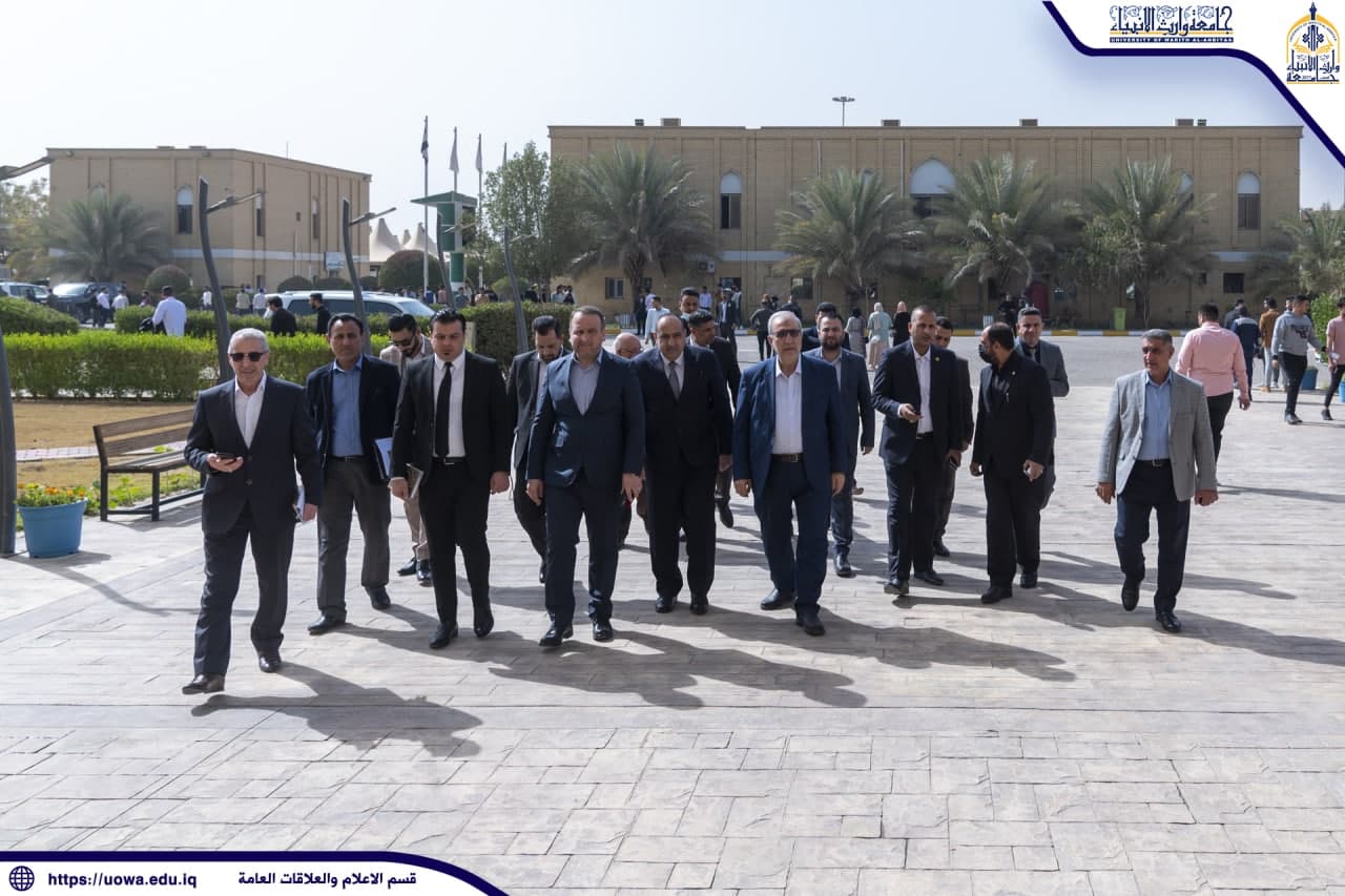 وكان باستقباله السيد رئيس هيئة التعليم الجامعي الاستاذ الدكتور حيدر التميمي والسيد رئيس الجامعة الاستاذ الدكتور ابراهيم الحياوي، والسادة مساعدي رئيس الجامعة وعمداء الكليات ورؤساء الاقسام واعضاء هيئة التدريس.