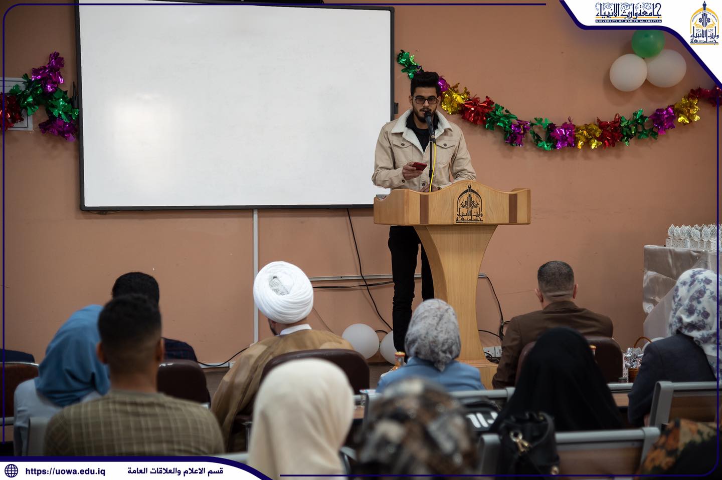 اقامت كلية التمريض في جامعة وارث الانبياء(عليه السلام) احتفالية بمناسبة ذكرى ولادة الامام المهدي(عج) حيث استضافت بهذه المناسبة سماحة الشيخ عبد الرضا معاش الذي قدم محاضرة توعوية تحدث فيها عن واجبات المنتظر الحقيقي لظهور الامام (عج)، وتأهيله بأعلى مستويات الوعي والالتزام، فعلى الشباب الجامعي تحمل المسؤولية في توعية أقرانهم وتخلل الحفل مشاركات شعرية وكلمات لطلبة الكلية.