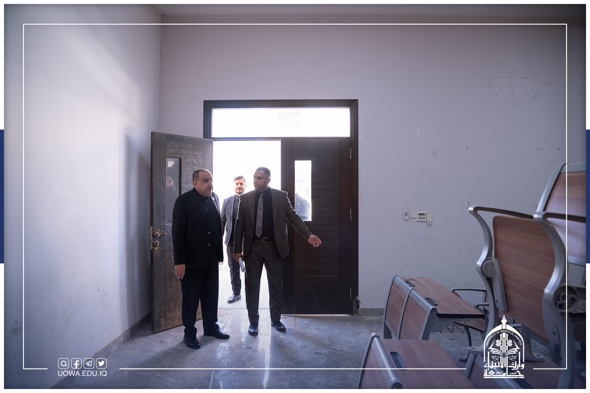 جانب من الجولة التفقدية لرئيس جامعة وارث الأنبياء (عليه السلام) الاستاذ الدكتور أبراهيم سعيد الحياوي على الأقسام الفنية والعلمية في الجامعة للوقوف على أحتياجاتها وأستعدادتها تحضيراً للعام الدراسي الجديد.