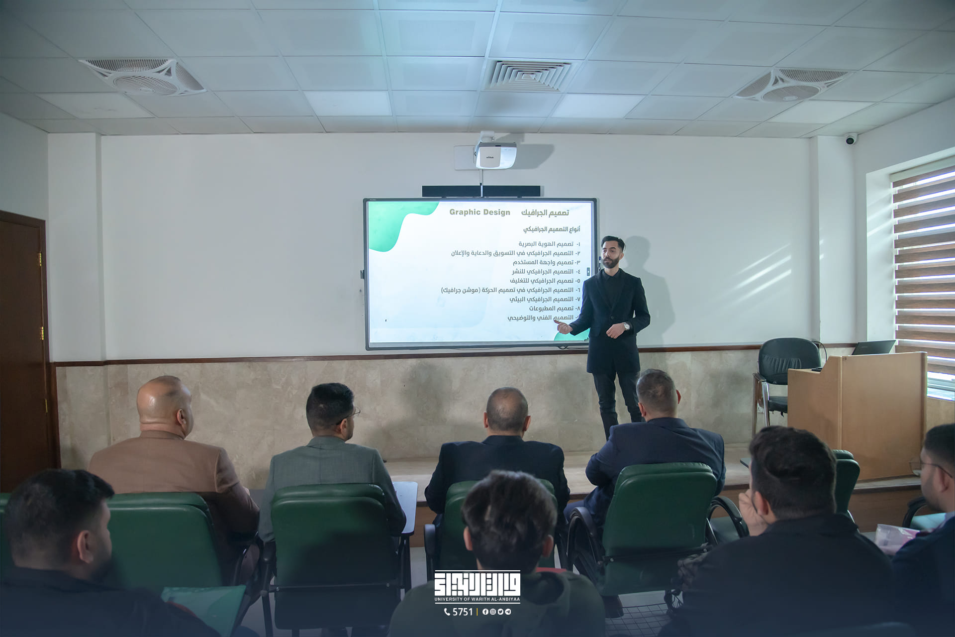 بحضور السيد رئيس الجامعة الاستاذ الدكتور ابراهيم الحياوي، وعميد الكلية الدكتور محمد جمال الطيف، أقامت  كلية الإعلام/قسم الإعلام الرقمي، وبالتعاون مع قسم الإعلام في العتبة الحسينية المقدسة، ورشة علمية بعنوان" التصميم الرقمي باستخدام تقنيات الذكاء الاصطناعي " قدمها المصمم أسامة عدنان الخياط من إعلام العتبة الحسينية المقدسة.