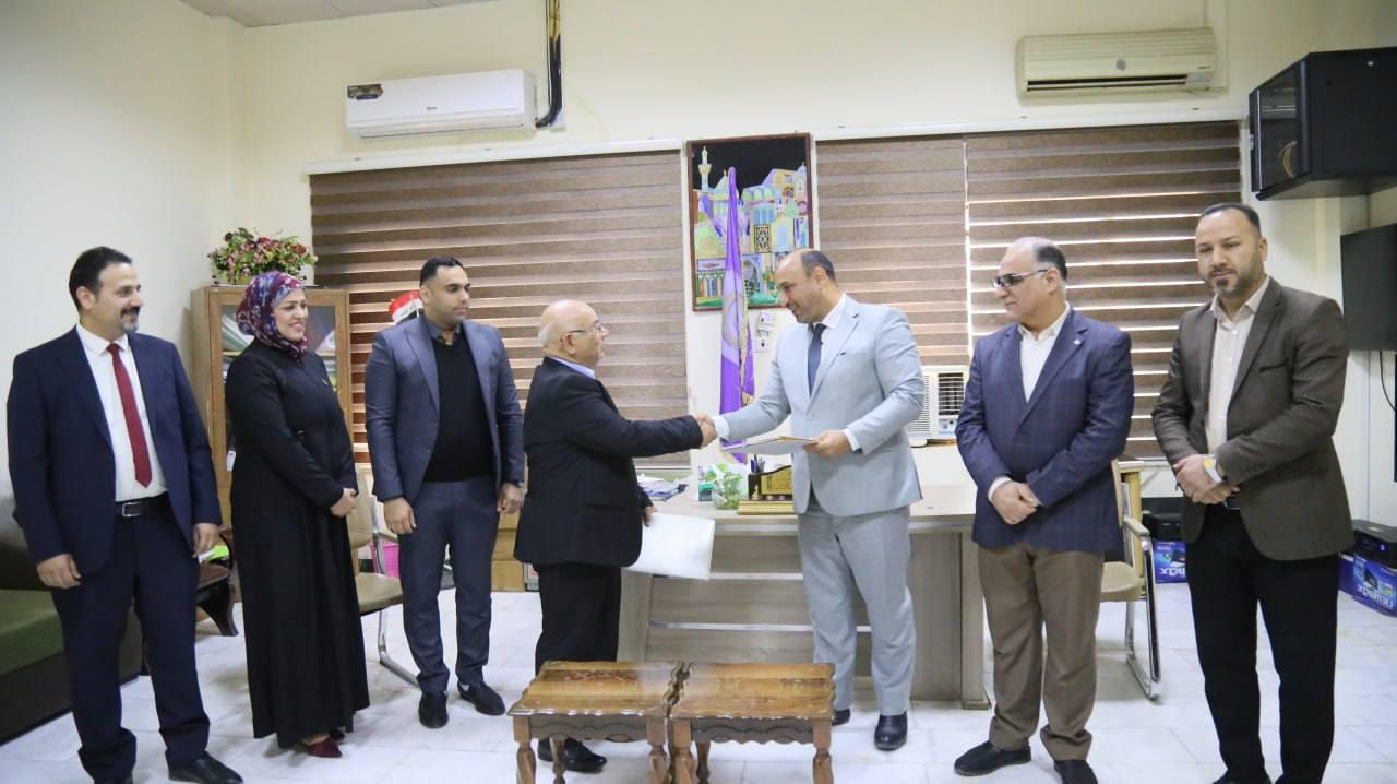 وفي الختام عبر السيد عميد الكلية عن سروره لتوقيع الإتفاقية مع كلية الادارة والاقتصاد جامعه وارث الانبياء لما له اثر في البحث العلمي وترصين العملية التعليمية .