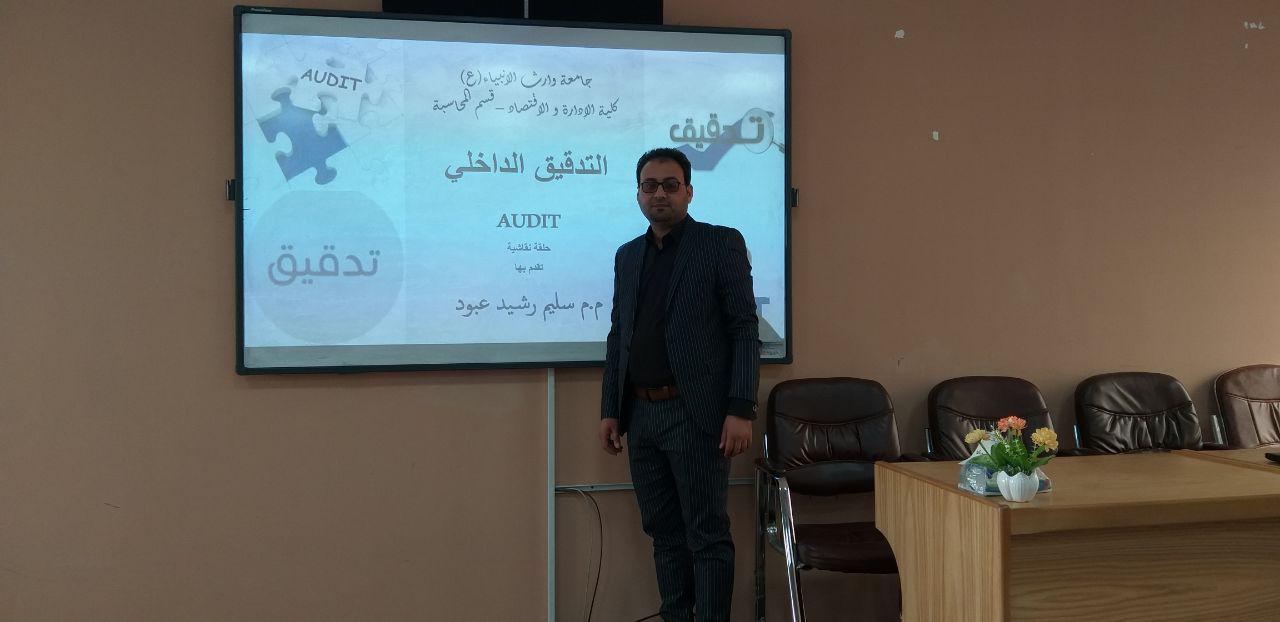 اقيمت في قاعة الامام الحسن -كلية الادارة والاقتصاد حلقة نقاشية بعنوان التدقيق الداخلي من قبل م.م سليم رشيد وقد تضمنت الحلقة الاشارة الى العديد من المحاور المهمة التي تتعلق بالتدقيق الداخلي والخطوات اللازم اتباعها من قبل الموظفين بالاضافة الى تقديم امثلة وقد شارك في الحلقة النقاشية اساتذة  كلية الادارة والاقتصاد وعدد من الطلبة
