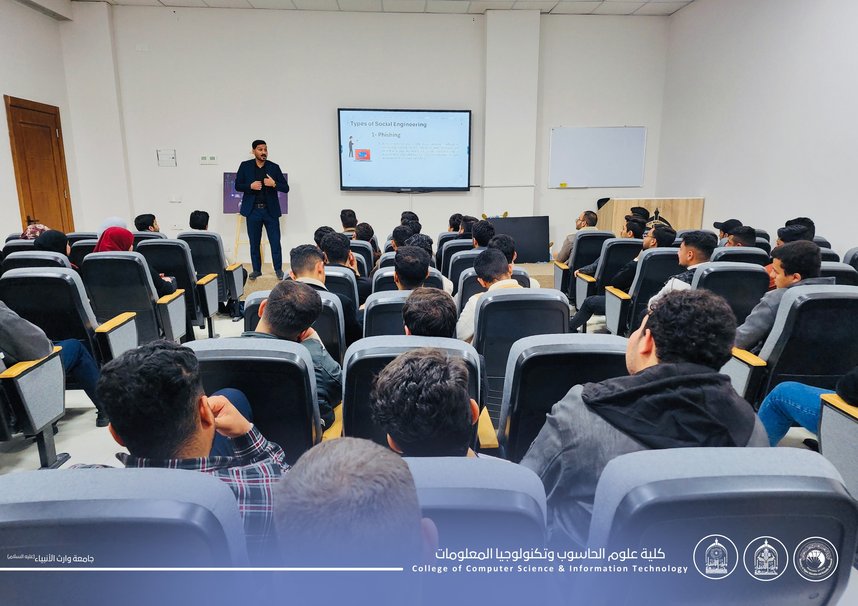 شهدت الكلية تنظيم ورشة توعوية تناولت موضوع Social Engineering، الذي يُعد من أخطر أساليب الاختراق الحديثة لاعتماده على استغلال السلوك البشري بدل الثغرات التقنية.
