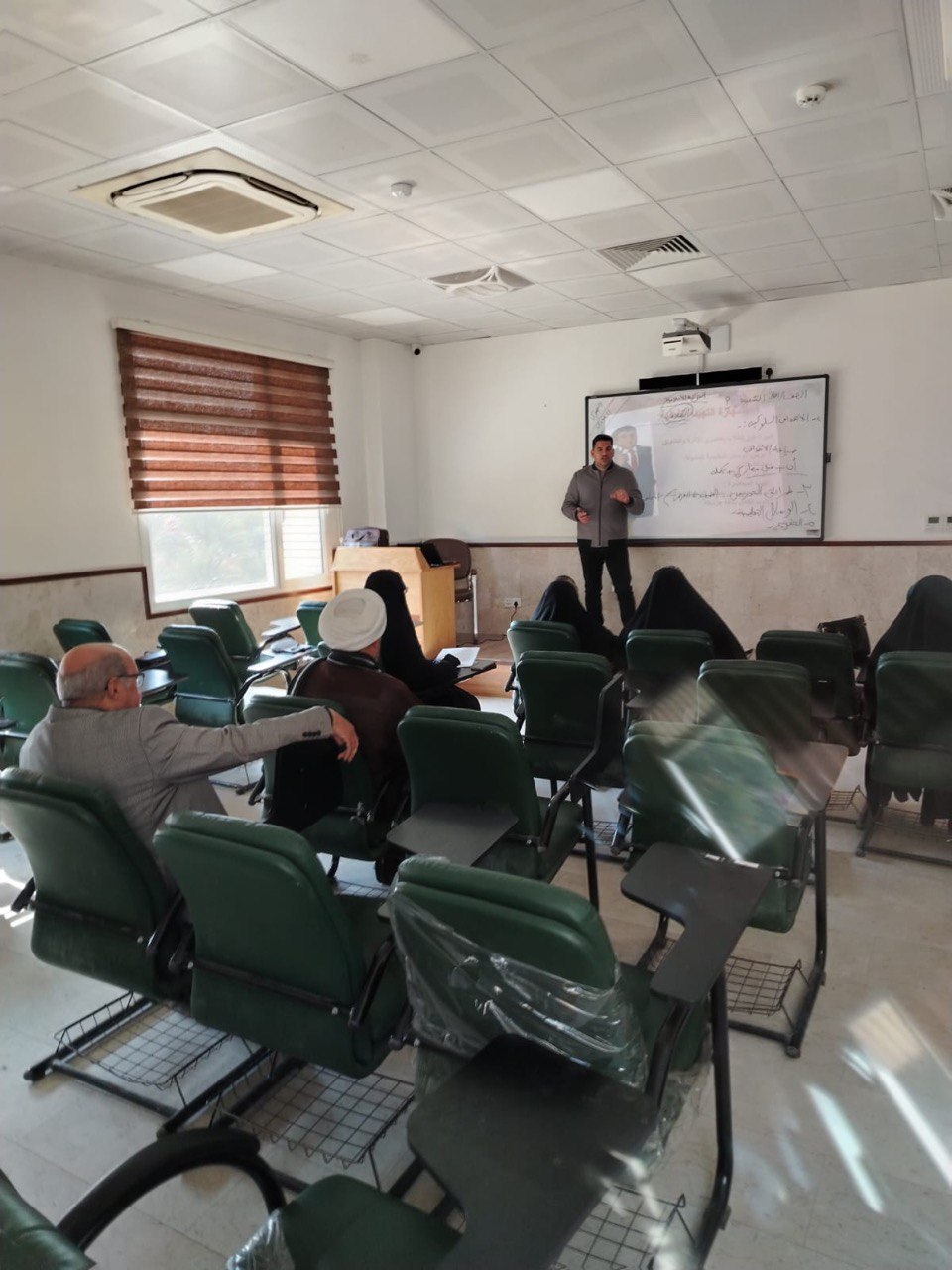 ألقى الورشة م. عباس عدنان كامل، حيث تناول أبرز التحديات التي يواجهها الطلبة خلال فترة التطبيق الميداني، بما في ذلك التعامل مع البيئة الصفية، وآليات إيصال المادة العلمية، والتفاعل مع الطلبة والإدارة المدرسية.