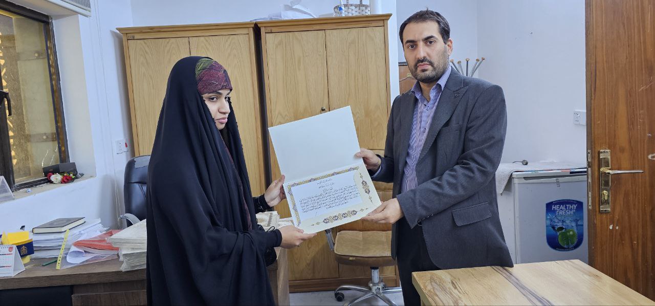 سلمت كلية العلوم الإسلامية شهادات وكتب مشاركة لعدد من الطلبة الذين أسهموا في كتابة المصحف الشريف ضمن مشروع “كلمات من نور” بنسخته الاولى، وذلك تقديراً لجهودهم المتميزة ومشاركتهم الفاعلة في هذا العمل القرآني المبارك.