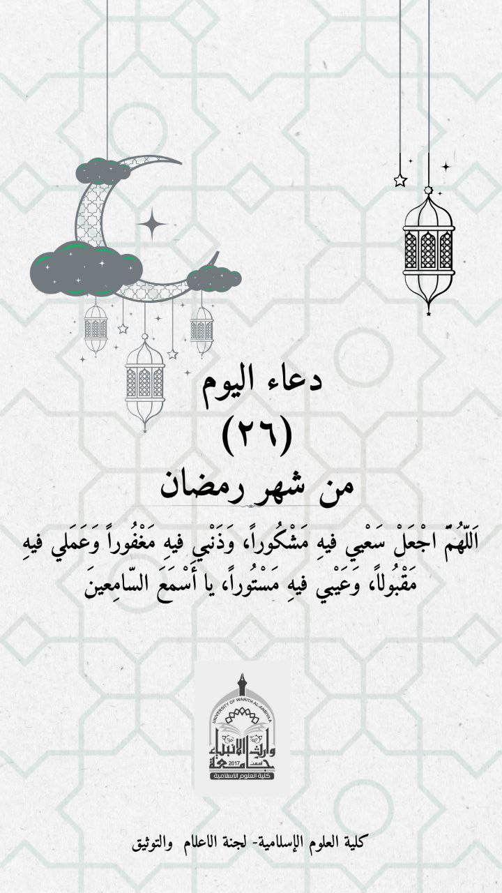 دعاء اليوم السادس والعشرين من شهر رمضان المبارك