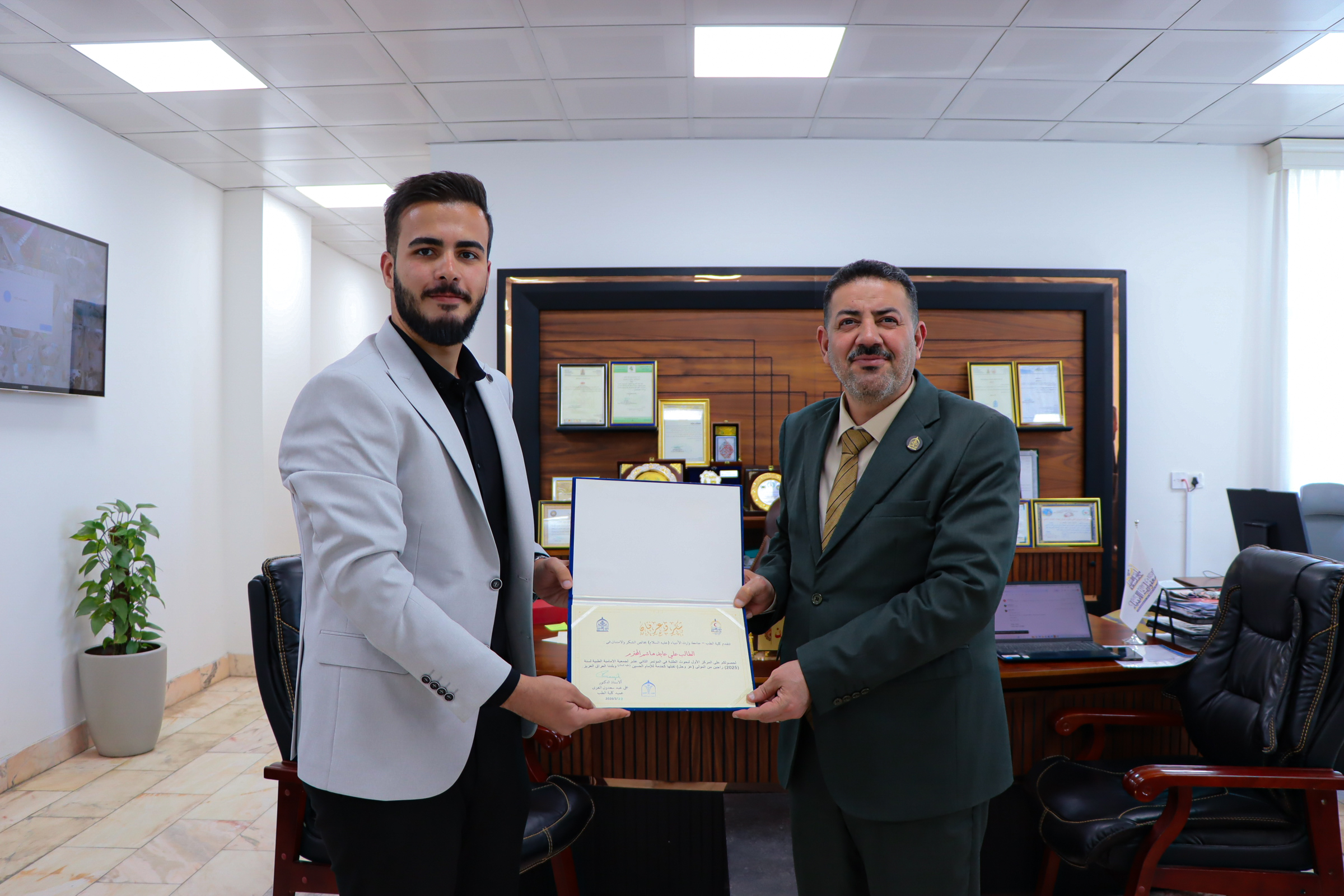 في أجواء أكاديمية متميزة، قدّمت المجموعة البحثية التي أشرف عليها السيد عميد كلية الطب الأستاذ الدكتور علي عبد سعدون الغزي، والممثلة بالطالب (علي عايد هاشم)، درع الشكر والعرفان لسيادته، تقديرًا لدعمه اللامحدود وإشرافه العلمي المتميز على بحث التخرج.