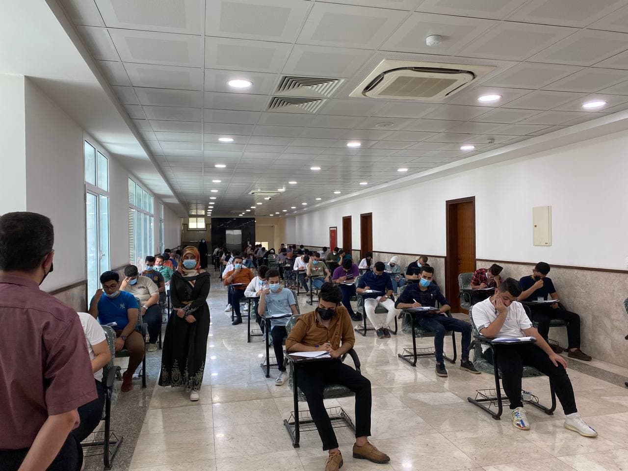 كلية الطب جامعة وارث الأنبياء عليهم السلام تستكمل الامتحانات الحضورية النهائية التي جرت بشكل جيد ولم تكن هناك اي معوقات نتيجة الجهود المتظافرة من قبل العمادة و اللجنة الامتحانية. و استمرار الامتحانات النهائية الالكترونية بأشراف السيد عميد كلية الطب الاستاذ الدكتور فالح البياتي المحترم، كما اكد على الالتزام بالوقاية الصحية من خطر انتقال العدوى حسب وتوجيهات وزارة التعليم العالي ووزارة الصحة