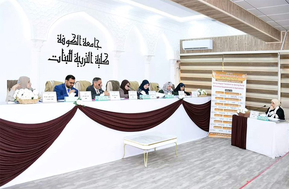 ناقشت أطروحة دكتوراه في كلية التربية الدكتوراه للبنات بجامعة الكوفة استخدام التحويل التكاملي لحل المعادلات التفاضلية الجزئية وتطبيقاته.