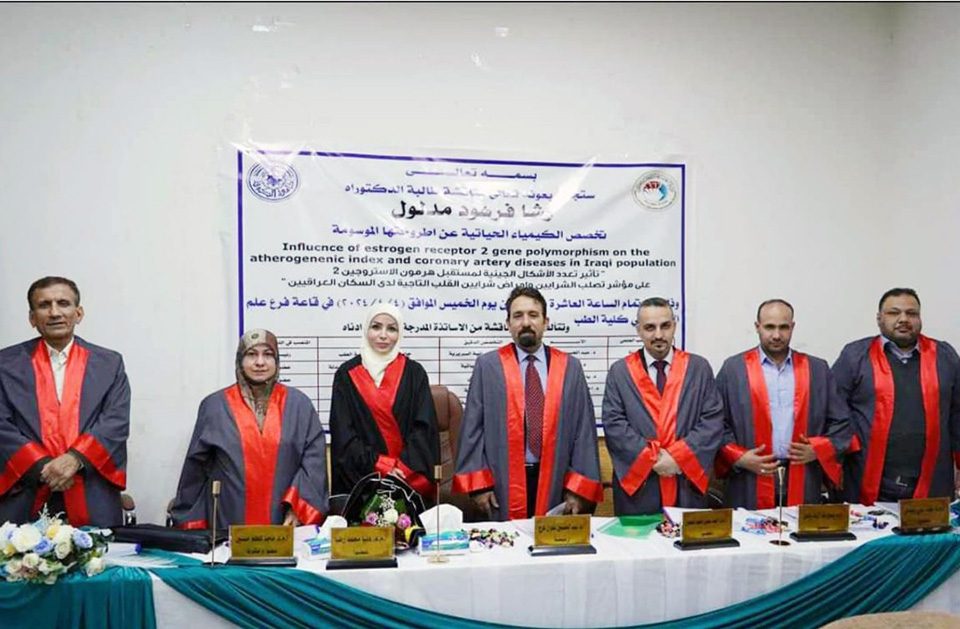بحثت اطروحة دكتوراه في كلية الطب بجامعة الكوفة تأثير تعدد الأشكال الجينية لمستقبل هرمون الاستروجين 2 على مؤشر تصلب الشرايين ومرض الشريان التاجي.
