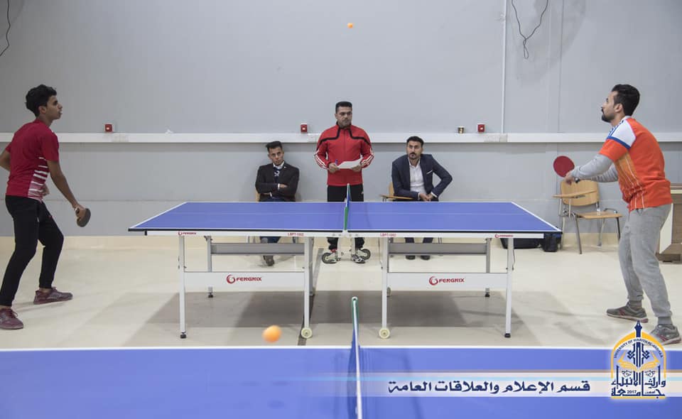 برعاية السيد رئيس جامعة وارث الانبياء التابعةً للعتبة الحسينية المقدسة اقام قسم النشاطات الطلابية بطولة الجامعة لتنس الطاولة، وقال م.م. همام عبد العباس رئيس قسم النشاطات الطلابية ان البطولة شملت جميع الكليات وبمشاركة كبيرة من الطلبة وبنظام التسقيط الفردي واضاف ستكون هناك عدة نشاطات خلال السنة للطلبة الاعزاء منها بطولة لخماسي الكره ومهرجان شعري وغيرها