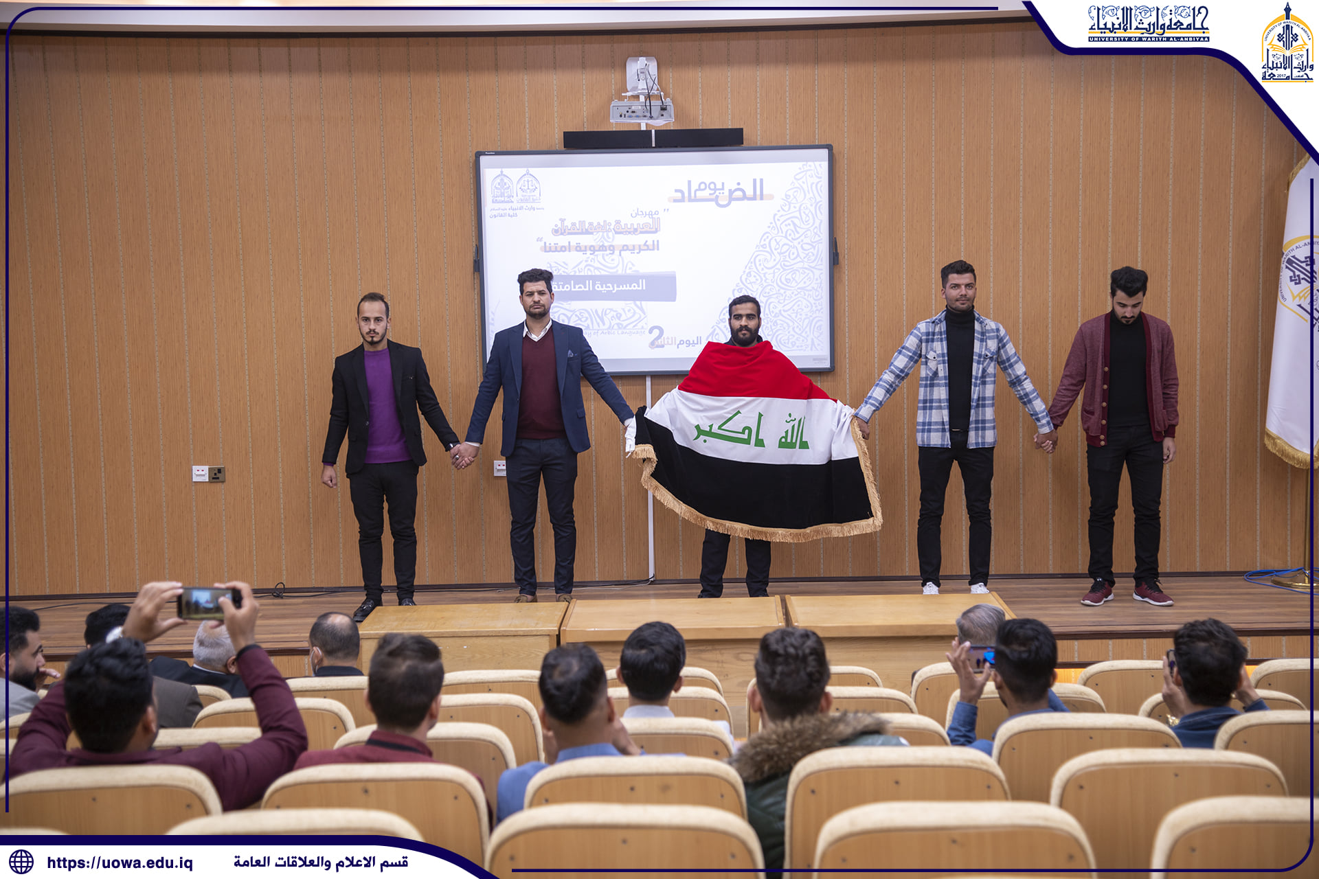 اختتمت جامعة وارث الأنبياء(عليه السلام)، فعاليات المهرجان السنوي الأول الذي أقامته على قاعة العلى احتفاءً باليوم العالمي للغة العربية.وتضمن منهاج اليوم الثاني والأخير قراءة لأربع أوراق بحثية، لكل من: الدكتور عدنان الشروفي، والدكتور لطيف القصاب، والدكتور ستار الغزي، والدكتور سامي المعموري.وناقش الباحثون والمشاركون أهمية اللغة في الصياغة القانونية وجدوى دراسة اللهجات العربية المحكية أكاديمياً مع الإشارة إلى موقف المشرع العراقي من المسألة اللغوية وقضايا لغوية أخرى مهمة.وخرج المهرجان الذي جاء تحت عنوان: "العربية: لغة القرآن الكريم وهوية أمتنا" بتوصيات ومخرجات عدة منها: أن يتخذ تقليداً سنوياً ويدعى إليه المتخصصون في لغة الضاد وأساتيذها من داخل العراق وخارجه.هذا وشهد المهرجان على مدار يومين متتاليين، حضور نخبة من التدريسيين والطلبة إلى جانب العديد من الباحثين والأدباء والمثقفين والمهتمين باللغة والأدب والقانون وفعاليات شعرية ومسرحية لعدد من طلبة الجامعة.