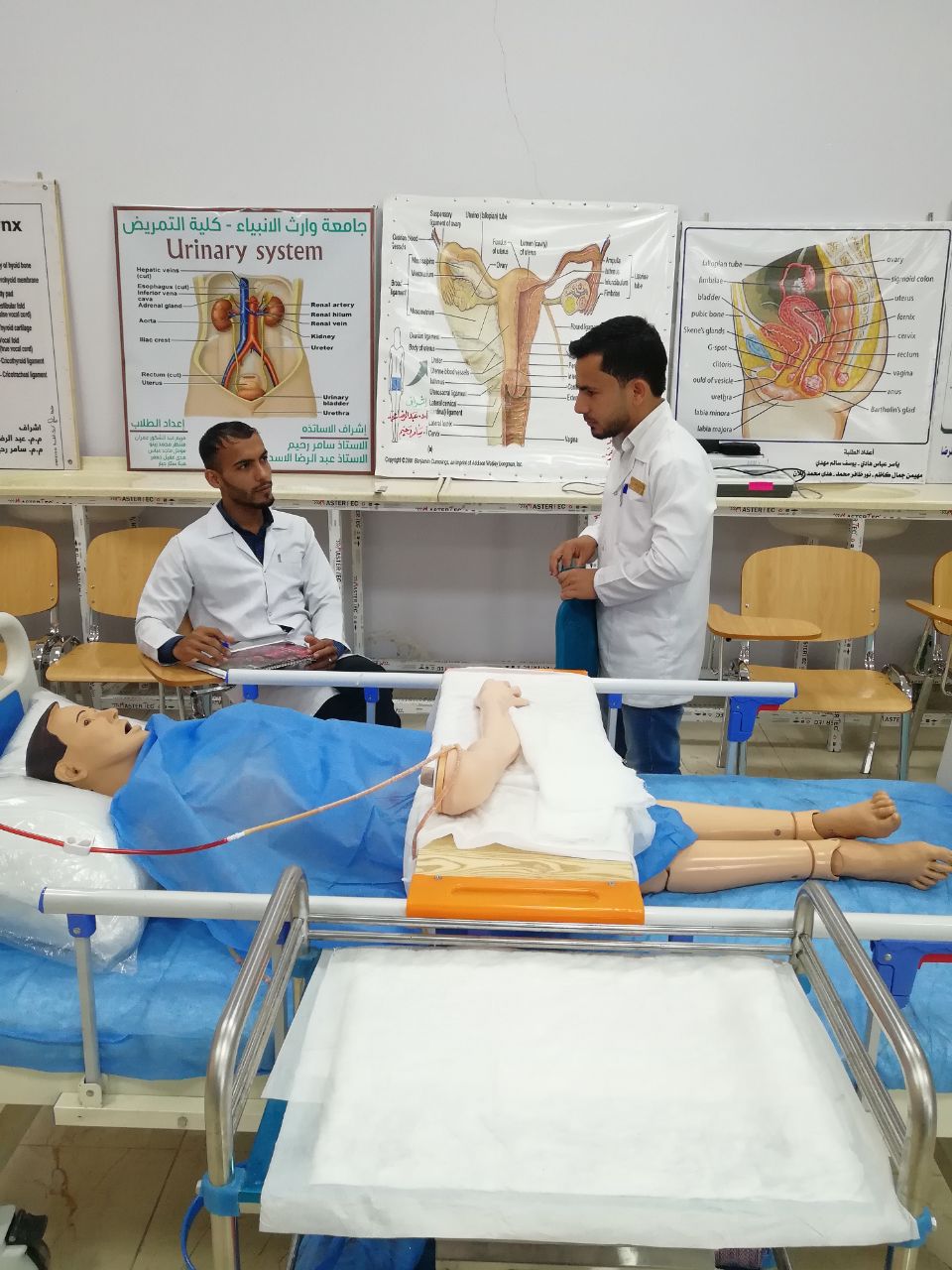 أجرت كلية التمريض جامعة وارث الأنبياء الإمتحان العملي النهائي لمادة أساسيات التمريض العملي الكورس الثاني لطلاب المرحلة الأولى بين الفترة من 18-5-209 إلى 20-5- 2019 بإشراف مجموعة من الأساتذة الأفاضل مدرسي المادة حيث أجري الإمتحان على مانيكانات ودمى حديثة في مختبرات الكلية وبين الأستاذ شادي دواره مشرف تدريب الطلاب في مستشفى الإمام زين العابدين ع أن هذا الإمتحان جاء تتويجا للتدريب العملي الذي تلقاه الطلاب في المختبرات على أحدث المانيكانات والأجهزة والذي رفده أيضا تدريب الطلاب بشكل عملي على كافة المهارات الأساسية والتي درست في الكورسين الأول والثاني في مستشفى الإمام زين العابدين ع وهذا بهدف تزويد الطلاب بالمهارة والخبرة العملية الازمة للممارسة المهنة بشكل آمن وبمستوى عالي خدمة لمجتمعنا العراقي الحبيب.