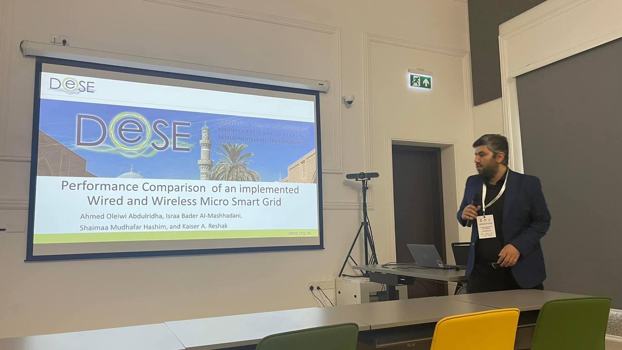 شارك التدريسي في كلية الهندسة المدرس المساعد احمد عليوي، والمدرس المساعد قيصر عبد الحسين في " المؤتمر الدولي الخامس عشر للتطورات في هندسة النظم الالكترونية (The 15th international conference on the developments in eSystems Engineering