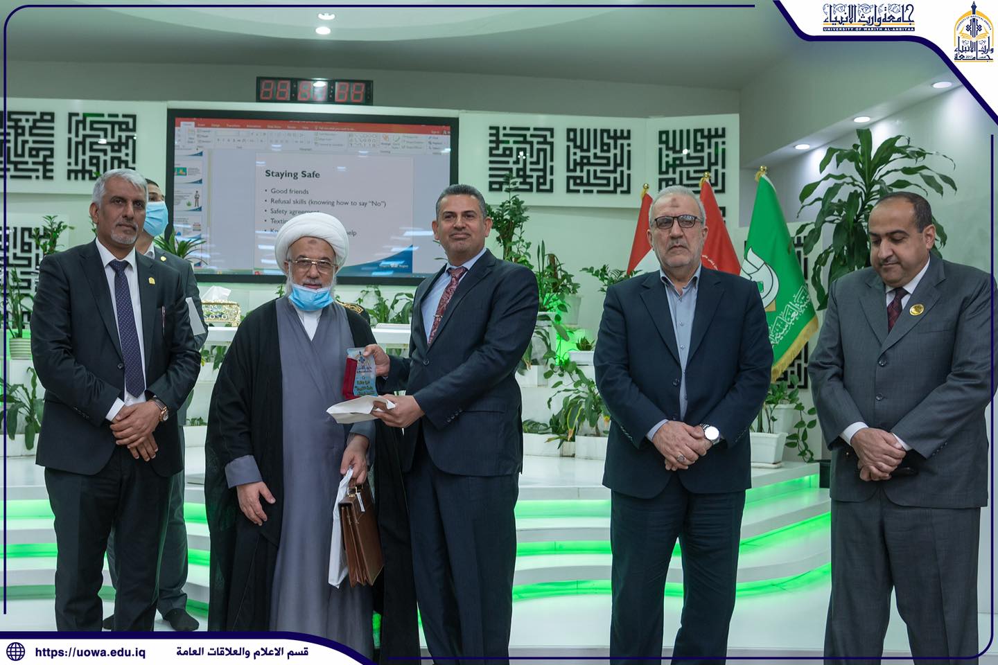 بحضور سماحة المتولي الشرعي للعتبة الحسينية المقدسة الشيخ عبد المهدي الكربلائي(دام عزه)وعدد من الشخصيات العلمية والأكاديمية والاجتماعية، اختتمت جامعة وارث الانبياء (عليه السلام) مسابقتها البحثية الأولى بتوزيع الجوائز على الباحثين العشرة الاوائل. وقال السيد رئيس الجامعة الاستاذ الدكتور ابراهيم الحياوي: "نظمت جامعتنا هذه المسابقة برعاية وزارة التعليم العالي والبحث العلمي، وهي الأولى من نوعها في العراق لتكريم الباحثين العراقيين المتميزين، حيث أشترك فيها اكثر من 650 باحث وباحثة من مختلف الجامعات العراقية الحكومية والأهلية ضمن محاورها الثلاثة (الطبية والهندسية والعلوم الصرفة).وأضاف الحياوي: " جاءت هذه الجائزة لدعم الباحثين وتشجيعهم و الإسهام في حل المشكلات المجتمعية، ولتقديم جهد علمي بحثي يسهم في تطوير الحركة العلمية والأكاديمية في بلدنا العزيز، ونحن نسعى لإصدار نسخة مطورة عن المسابقة في المستقبل بما يسهم في تطوير عمل المؤسسات التعليمية الرصينة".