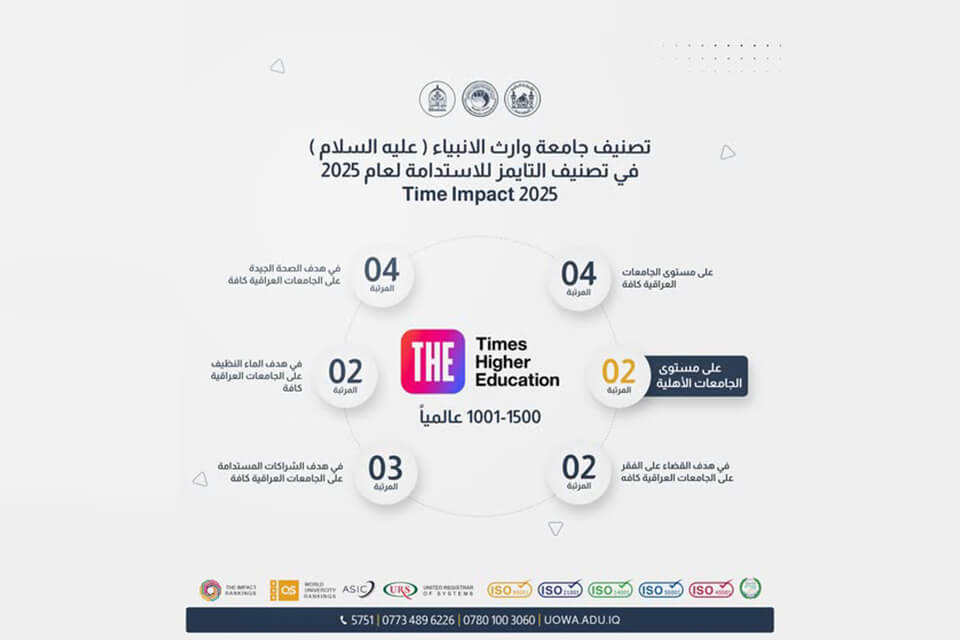 جامعة وارث الأنبياء (ع) تحقّق تقدماً في تصنيف التايمز لعام 2025 وتحصد المرتبة الثانية بين الجامعات الأهلية في العراق