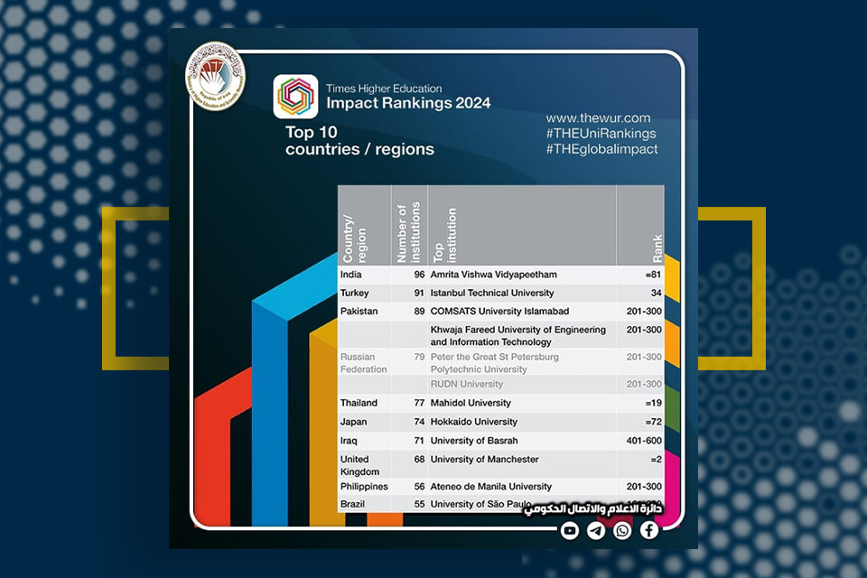 العراق يحقق تميزاً عالمياً في تصنيف التايمز للتنمية المستدامة