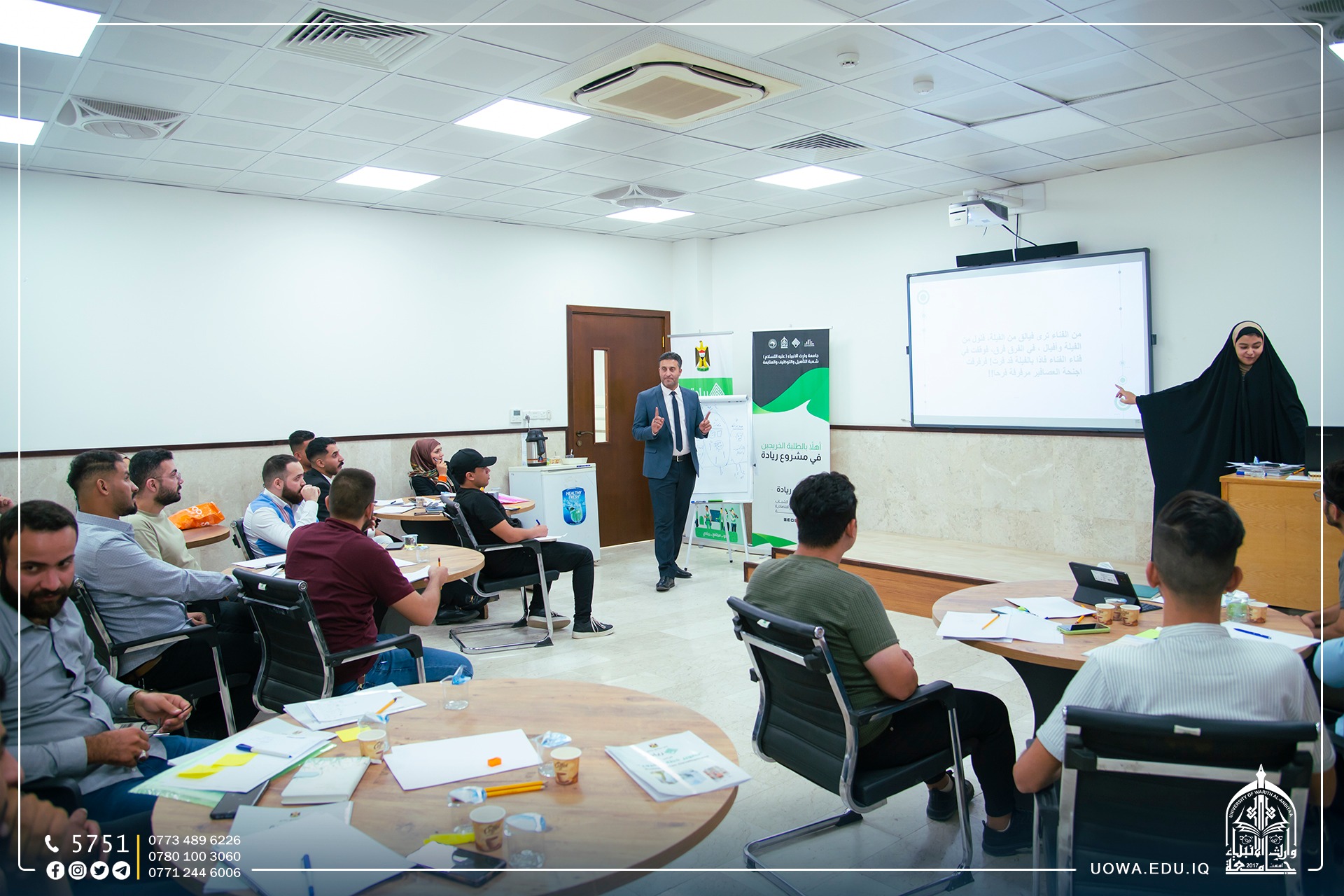 استمرار الدورات التدريبية (الدورة الخامسة) التي تقيمها جامعة وارث الانبياء(عليه السلام)/ شعبة التأهيل والتوظيف ضمن مبادرة"ريادة" الحكومية التي تهدف إلى دعم مشاريع الطلاب والخريجين، بمشاركة المدربين صفاء السيلاوي وفاطمة الكاصد، و تنظيم هذه الدورة بشكل دائم على مدار أسبوعين في الشهر.