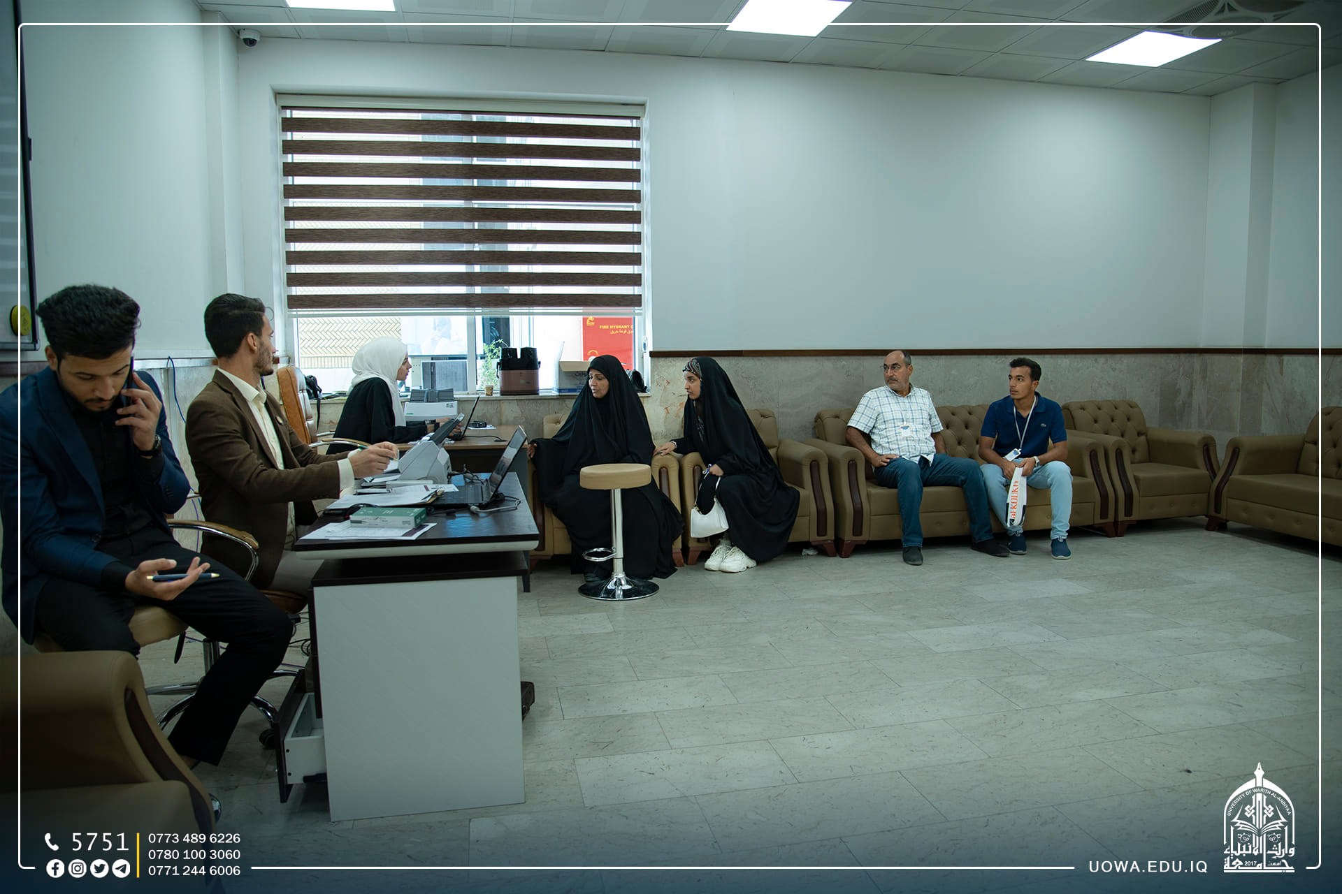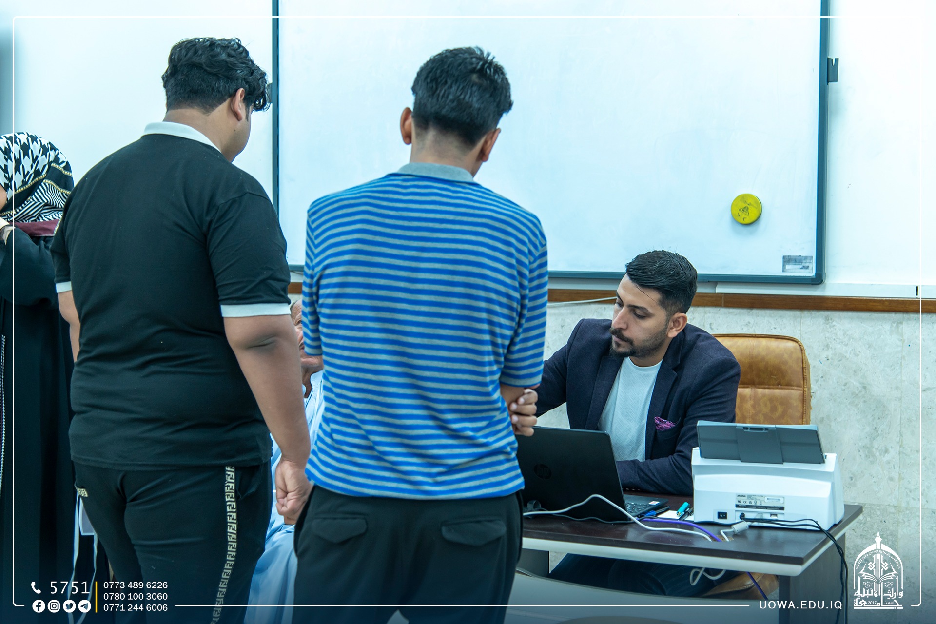 يواصل فريق التسجيل في جامعة وارث الانبياء(عليه السلام) إستقبال الطلبة الاعزاء واولياء امورهم الكرام، لمساعدتهم في إتمام المرحلة الاولى من التقديم.