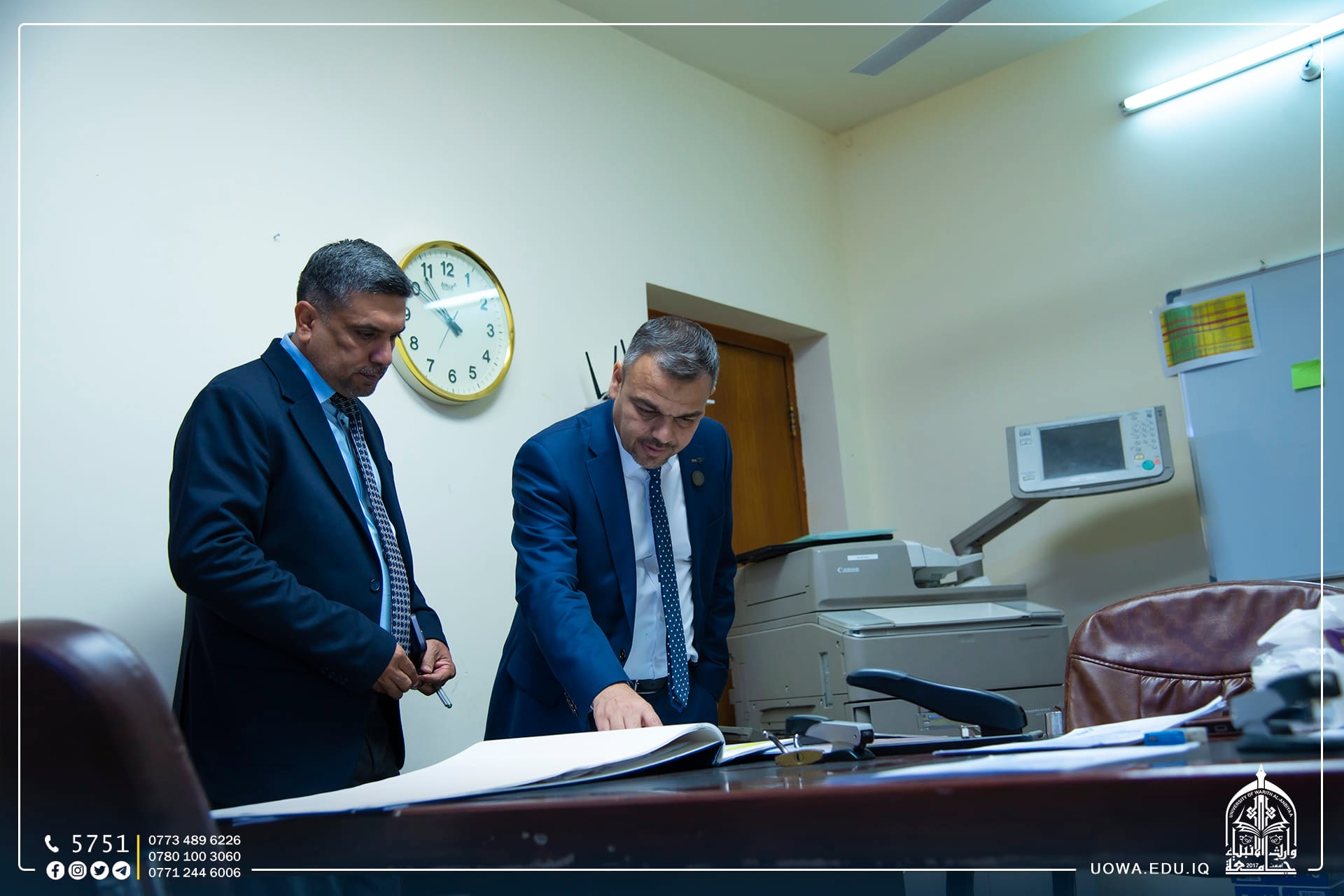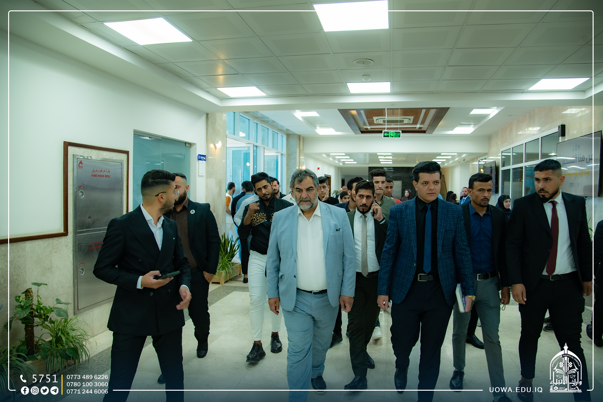 انطلاقاً من حرص رئاسة الجامعة على عقد اللقاءات الدورية مع ملاكاتها الإدارية والتدريسية للوقوف على احتياجاتهم وحل مشاكلهم، اجتمع السيد رئيس الجامعة الاستاذ الدكتور ابراهيم الحياوي والاستاذ الدكتور نوفل الاعرجي، مع ملاكات قسم المتابعة باعتبارهم الواجهة الاولى لزوار الجامعة ، مؤكداً على بذل الجهود اللازمة التي تسهم في حفظ سلامة وأمن الجامعة وطلبتها والتاكيد على التعامل الحَسِن مع طلبتنا الاعزاء.