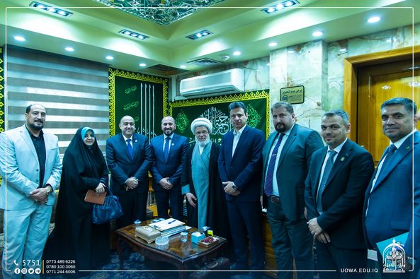 وفد رئاسة الجامعة التكنلوجية يتشرف بلقاء المتولي الشرعي للعتبة الحسينية المقدسة سماحة الشيخ عبد المهدي الكربلائي(دام عزه)، على هامش زيارتهم الى جامعة وارث الانبياء.