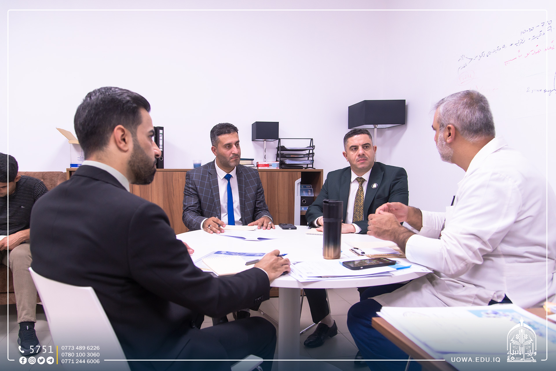 زار وفد من مستشفى الهندية العام، جامعة وارث الانبياء (عليه السلام)، إذ التقى الوفد برئاسة الجامعة وعمادة كلية الطب، من اجل مناقشة إمكانية تقديم الخدمات الطبية لطلبة كلية الطب.