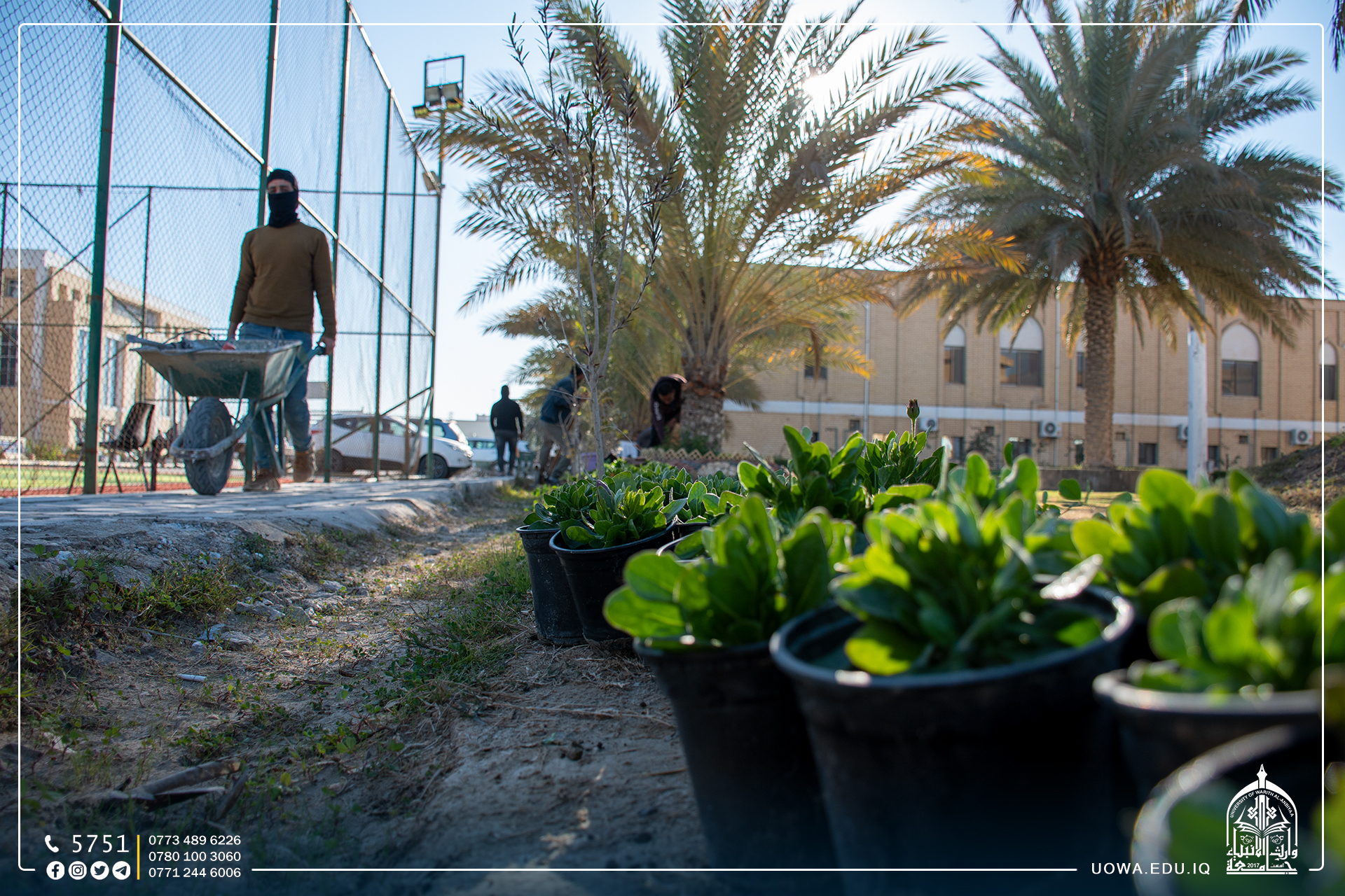 من خلال الاهتمام بالمساحات الخضراء، الصيانة، ونظافة الجامعة لإظهارها بأبهى صورة.