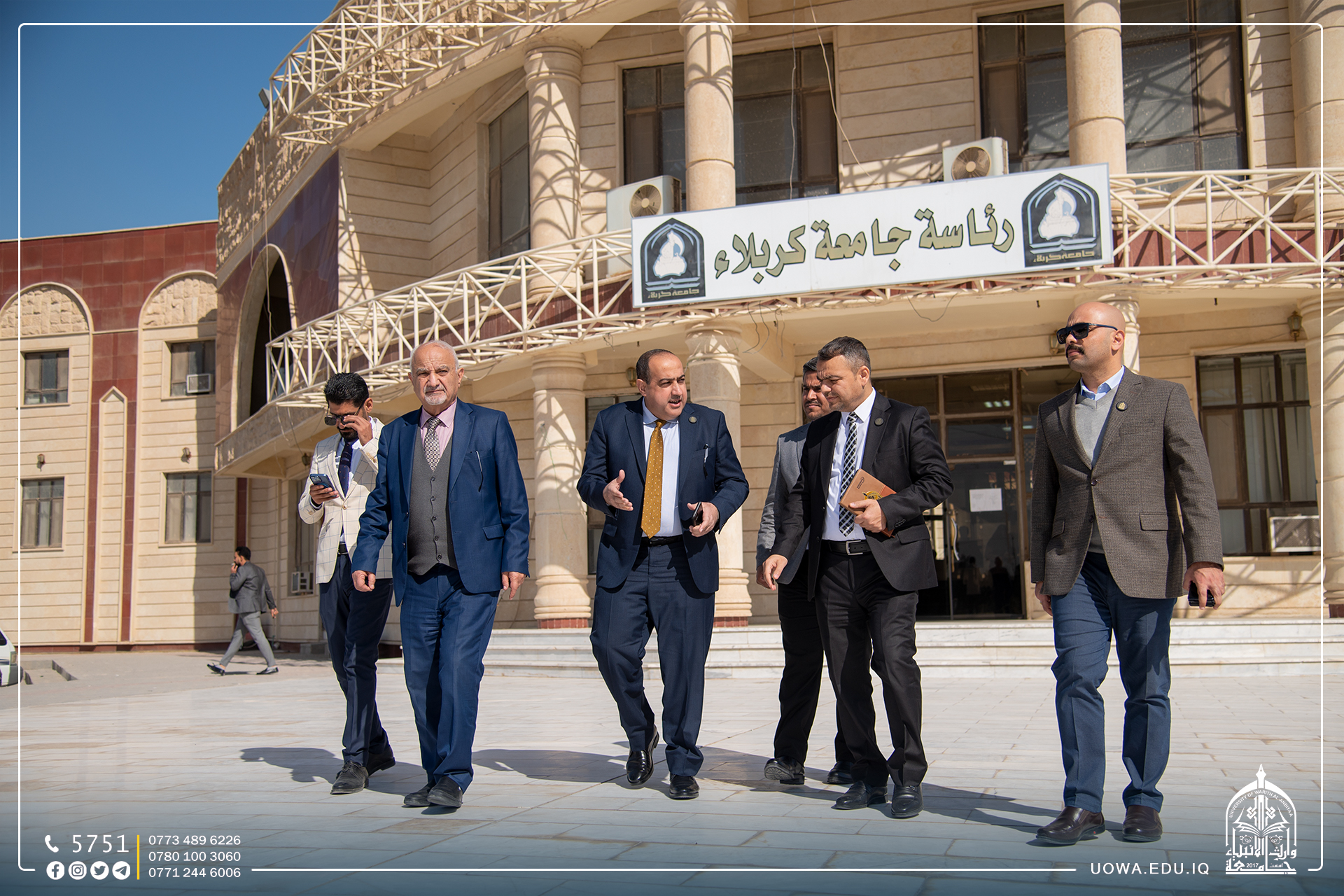 من أجل تعزيز التعاون العلمي في بنشر البحوث الرصينة بين جامعتي كربلاء ووارث الانبياء (عليه السلام)، زار السيد رئيس جامعة وارث الانبياء الاستاذ الدكتور ابراهيم سعيد الحياوي يرافقة المساعد الاداري الاستاذ الدكتور نوفل الاعرجي والوفد المرافق لهما جامعة كربلاء.