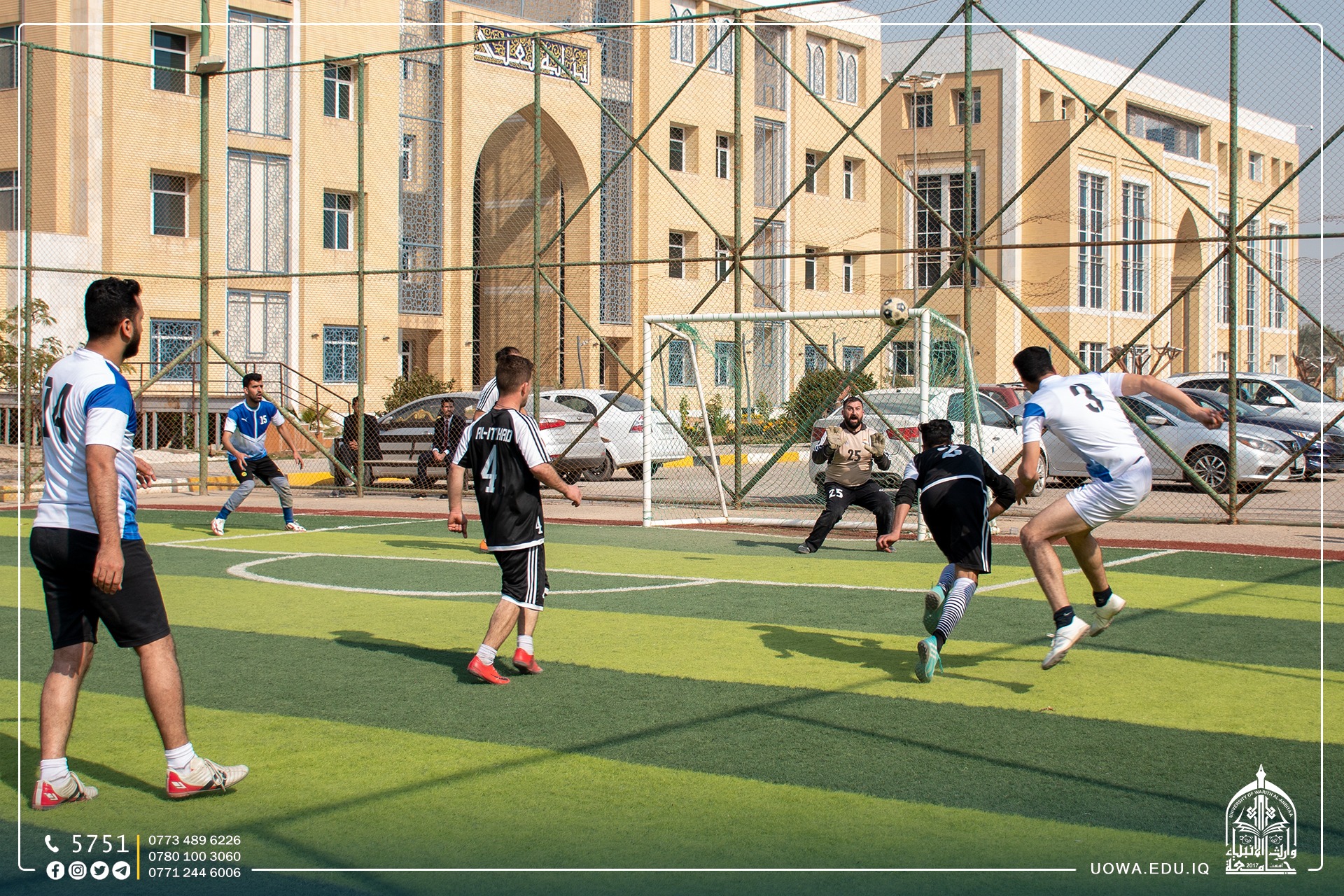 اختتم قسم النشاطات الطلابية في جامعة وارث الانبياء (عليه السلام ) بالتعاون مع مركز رعاية الشباب، بطولة خماسي الكرة الخاصة بأساتذة ومنتسبي الجامعة، احرز فيها فريق قسم شؤون الديوان كأس البطولة بفوزه على فريق قسم الهندسة بهدف مقابل لاشيئ.