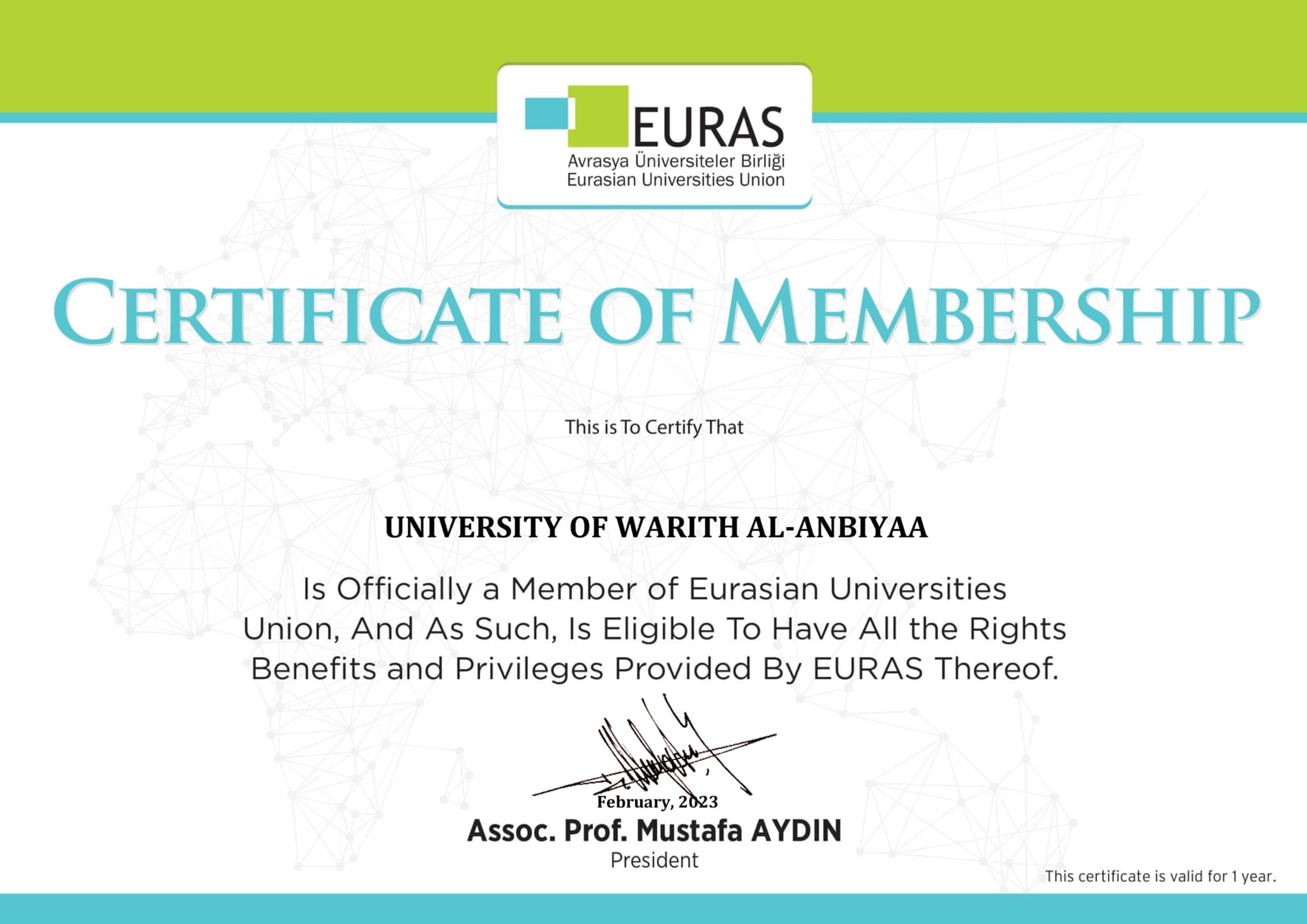 ضمن توجهات هيئة الصحة والتعليم الجامعي وبدعم مباشر من رئاسة جامعة وارث الأنبياء تمكن قسم ضمان الجودة والاداء الجامعي من استكمال متطلبات انضمام الجامعة لاحد أكبر الجمعيات العالمية المرموقة في التعليم العالي.