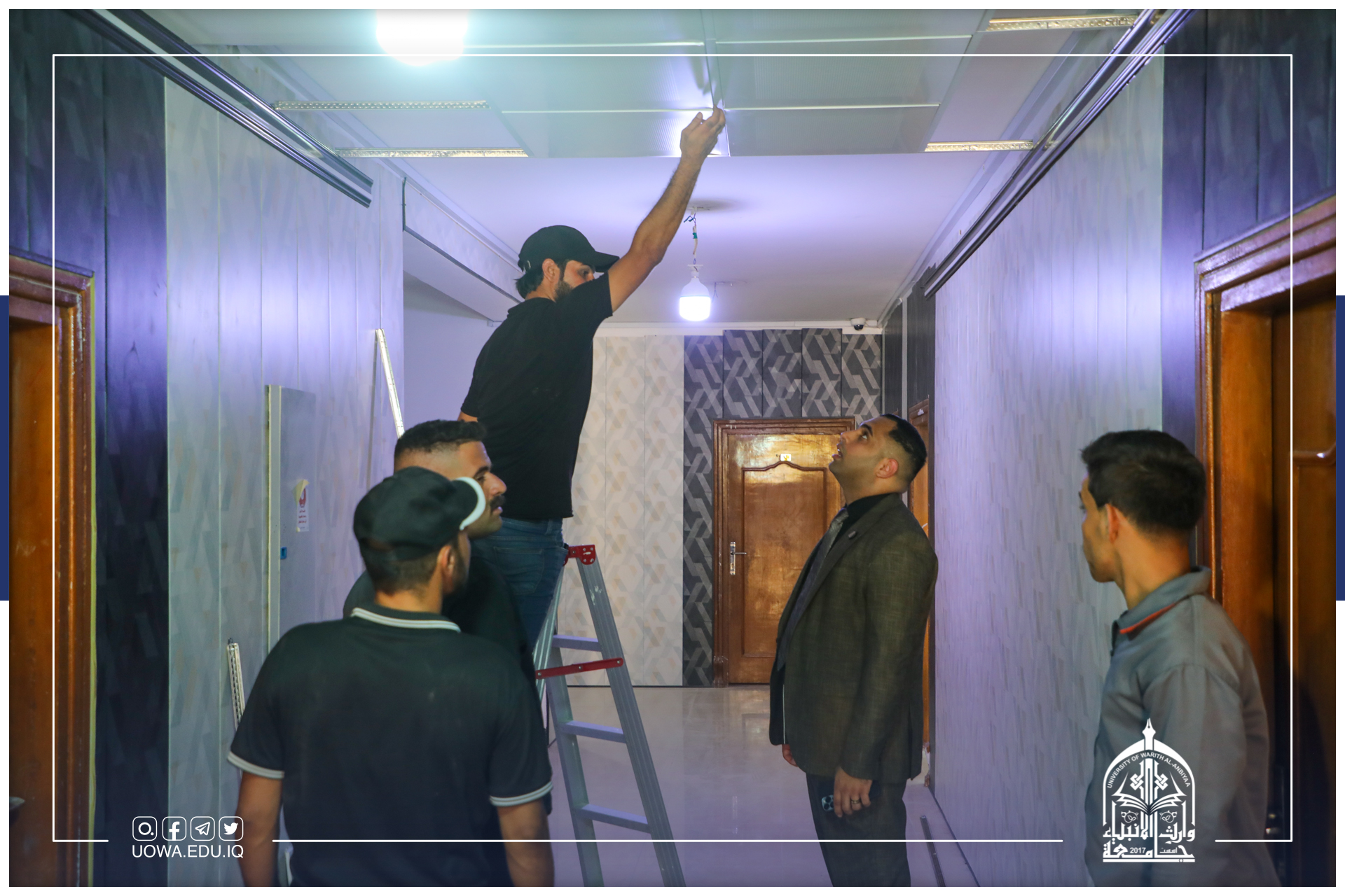 تتواصل جهود ملاكات قسم شؤون الديوان في جامعة وارث الانبياء "عليه السلام" إعادة تأهيل وترتيب الممرات ومداخل الكليات والمجمعات الخدمية، سعياً منها لتوفير كل سبل الراحة لطلبتنا الاعزاء.
