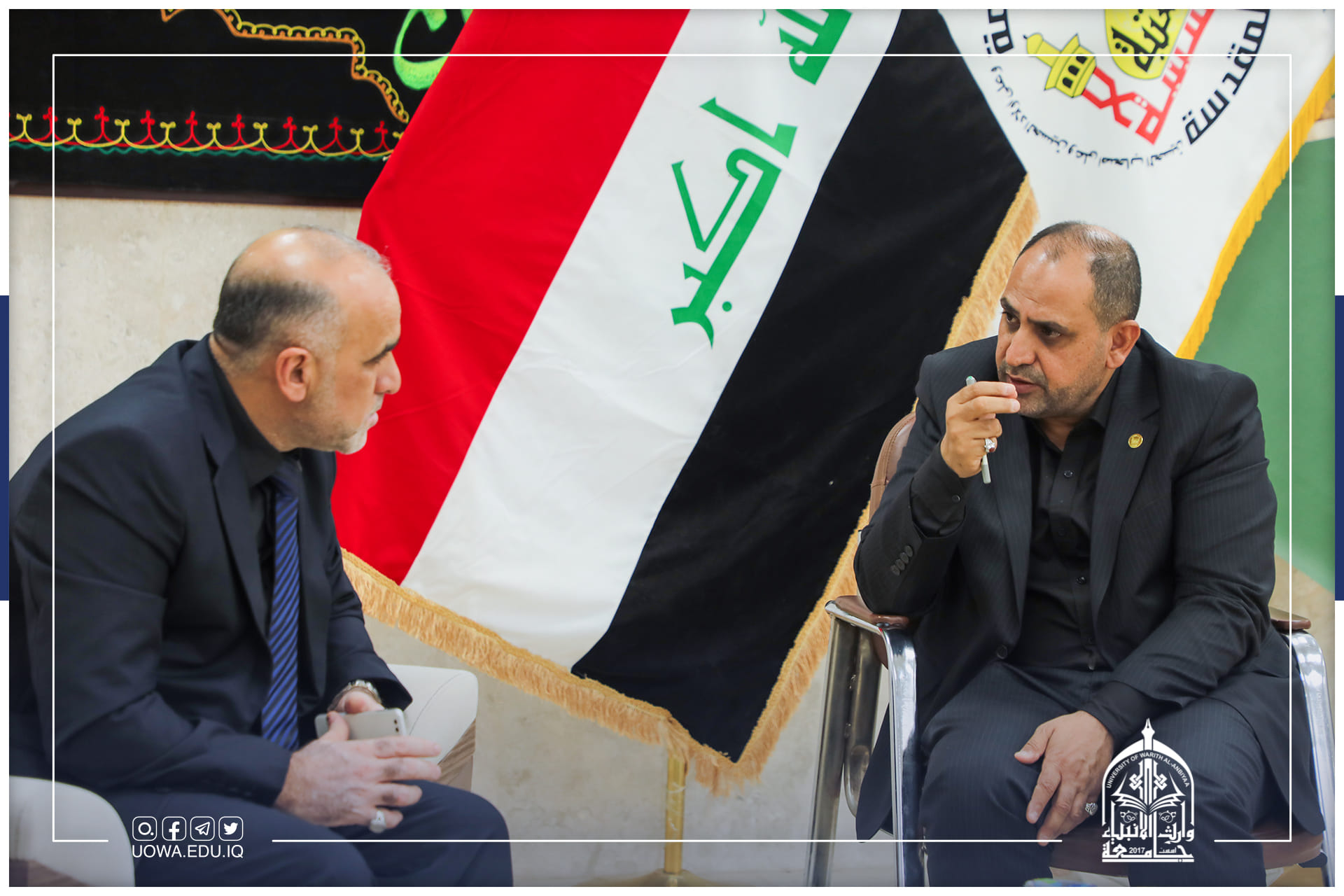 تشرفت جامعة وارث الانبياء (عليه السلام) بزيارة سماحة المتولي الشَّرعي للعتبة الحسينية المقدسة الشيخ عبد المهدي الكربلائي( دام عزة )، وكان باستقباله السيد رئيس الجامعةا.د ابراهيم الحياوي والسيد المساعد الاداري ا.د. نوفل الاعرجي، وبعض السادة عمداء الكليات.