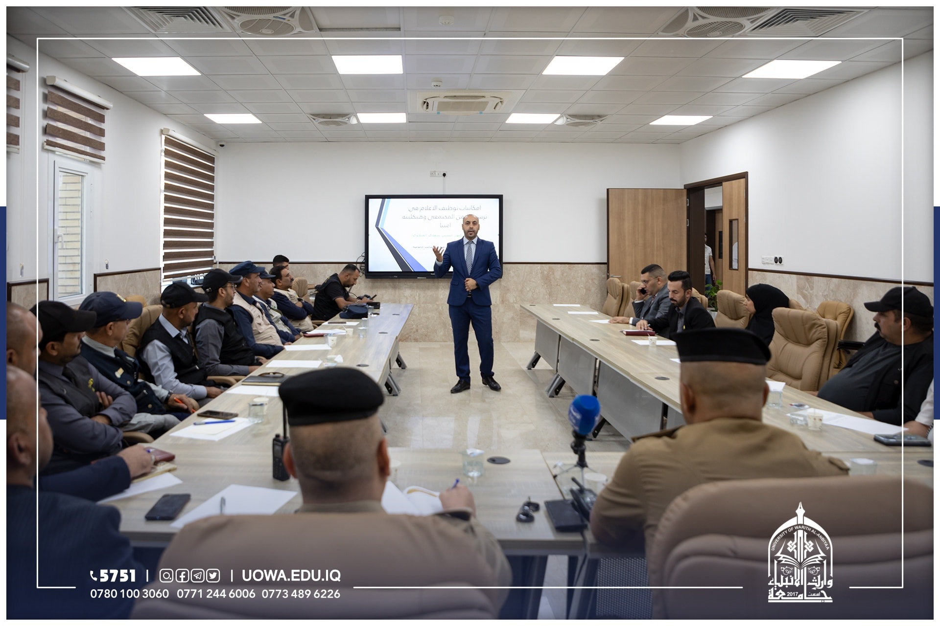 اقامت نقابة الاكاديميين العراقيين فرع كربلاء المقدسة وبالتعاون مع جامعة وارث الانبياء(عليه السلام) ورشة عمل لقيادة شرطة محافظة كربلاء المقدسة بعنوان: امكانيات توظيف الاعلام في ترسيخ الامن المجتمعي وهيكلته امنيا"