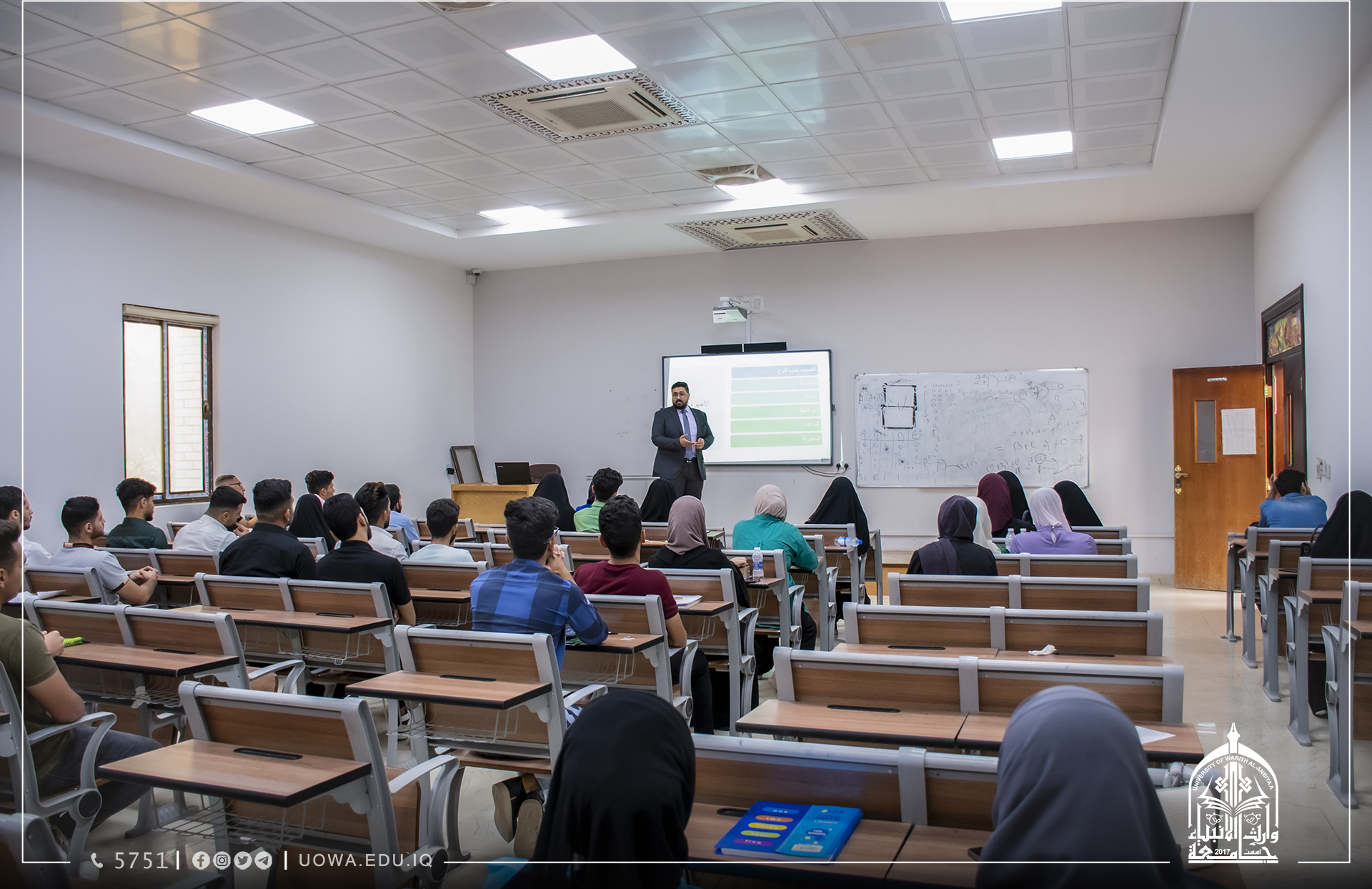 على قاعة الإمام الحسين عليه السلام (القاعة المدرجة في كلية القانون)