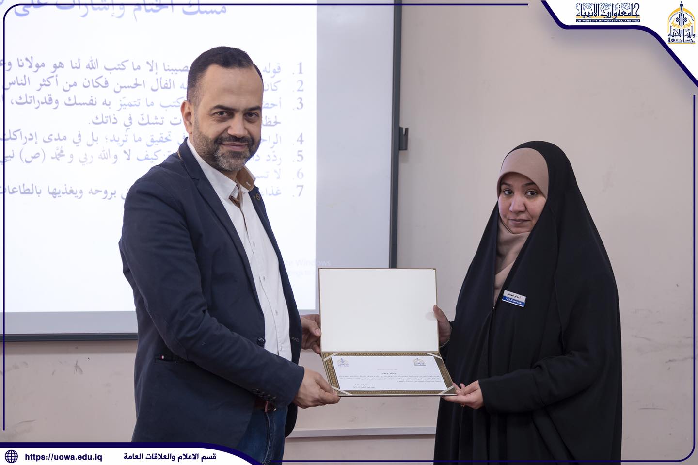 أقيمت في كلية الإدارة والأقتصاد وبالتعاون مع رئاسة الجامعة ندوة علمية بعنوان (التّحليل النسيجي والنفسي لعارض التوحُّد) ألقاها الأستاذ الدّكتور اكرم يوسف ياسر المتخصص في علم الانسجة، وقال الدّكتور اكرم أن ألهدف من هذهِ المحاضرة هو التّعريف بكيفية حصول عارض التوحُّد وما هي النصيحة التي تٌقدّم الى العوائلِ وبالأخص الأم الحامل التي عليها ان تكون حريصة قبل الحمل وأثنائه  لتجنب طفلها هَذَا العارض، وأضاف أنني أشجع وأثني على جامعة وارث الأنبياء لتبنيها هَكَذَا ندوات ومحاضرات والتواصل مع الجامعات الأخرى وأرى ان الأمور فِيهَا واعدة الى خير خدمة للعملية التعليمية