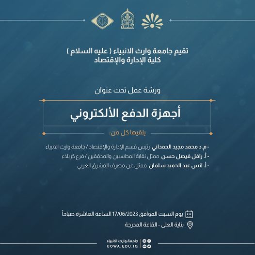 تقييم جامعة وارث الأنبياء (عليه السلام) – كلية الإدارة والاقتصاد ورشة عمل بعنوان (أجهزة الدفع الالكتروني) ويلقيها كل من: