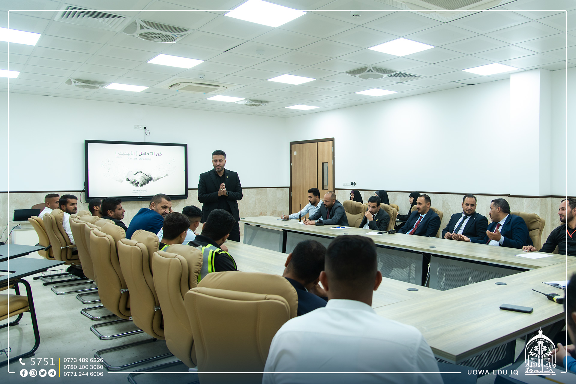 تقدمت جامعة وارث الأنبياء (عليه السلام) بخطوة مميزة في رفع مستوى التواصل والثقافة بين موظفيها، حيث نظم مركز التعليم المستمر دورة تدريبية استثنائية حول فن الاتيكيت والبروتوكول. استهدف البرنامج التدريبي موظفي قسم المتابعة وقسم ديوان الجامعة، بهدف تطوير قدراتهم ومهاراتهم في مجال الاتيكيت والسلوك الاجتماعي.
