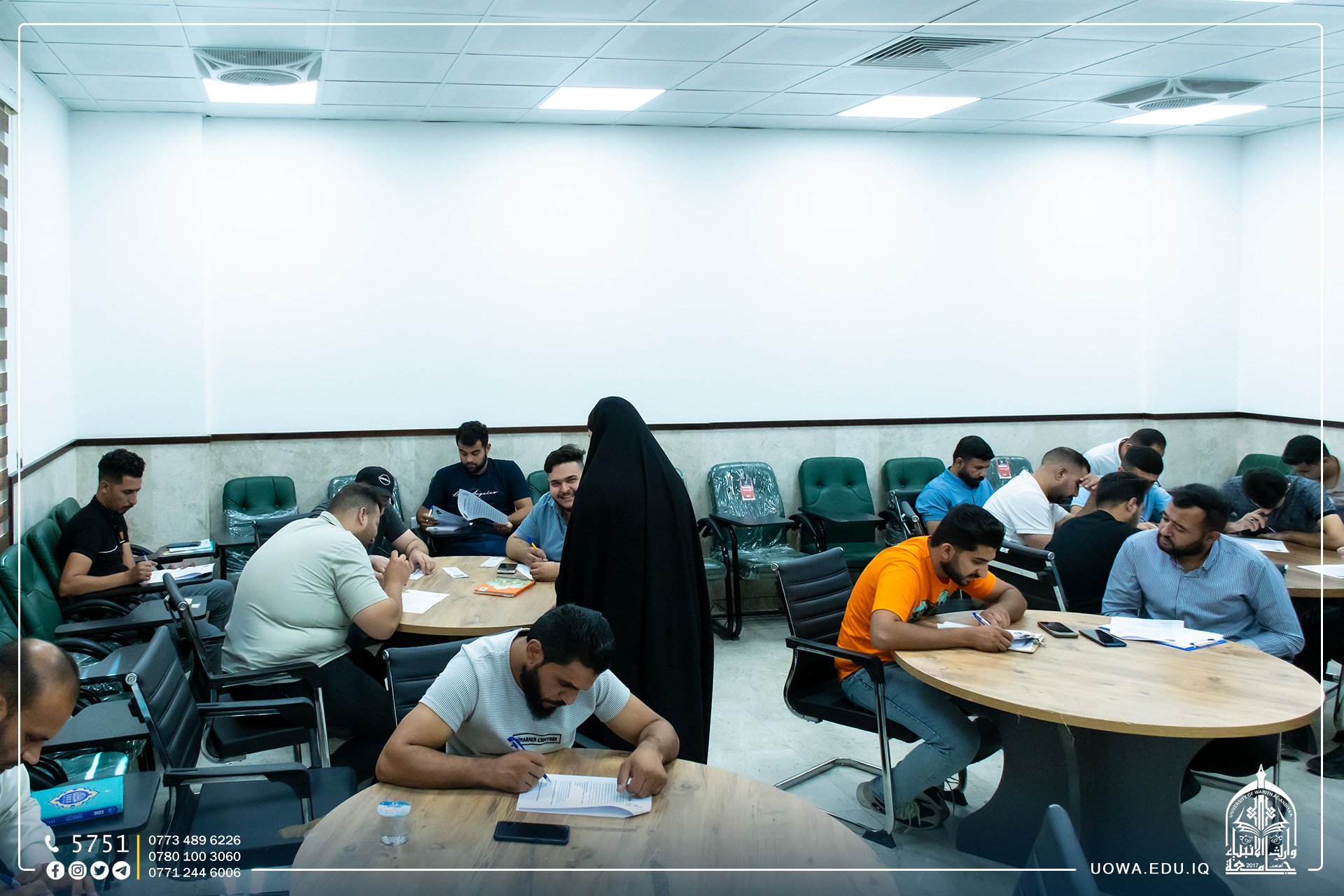 يقيم مركز التعليم المستمر ورشة أختبار للطلبة المتقدمين (لكورس اللغة الإنكليزية الصيفي) وذلك لتحديد مستوياتهم اللغوية قبل البدء في الكورس.