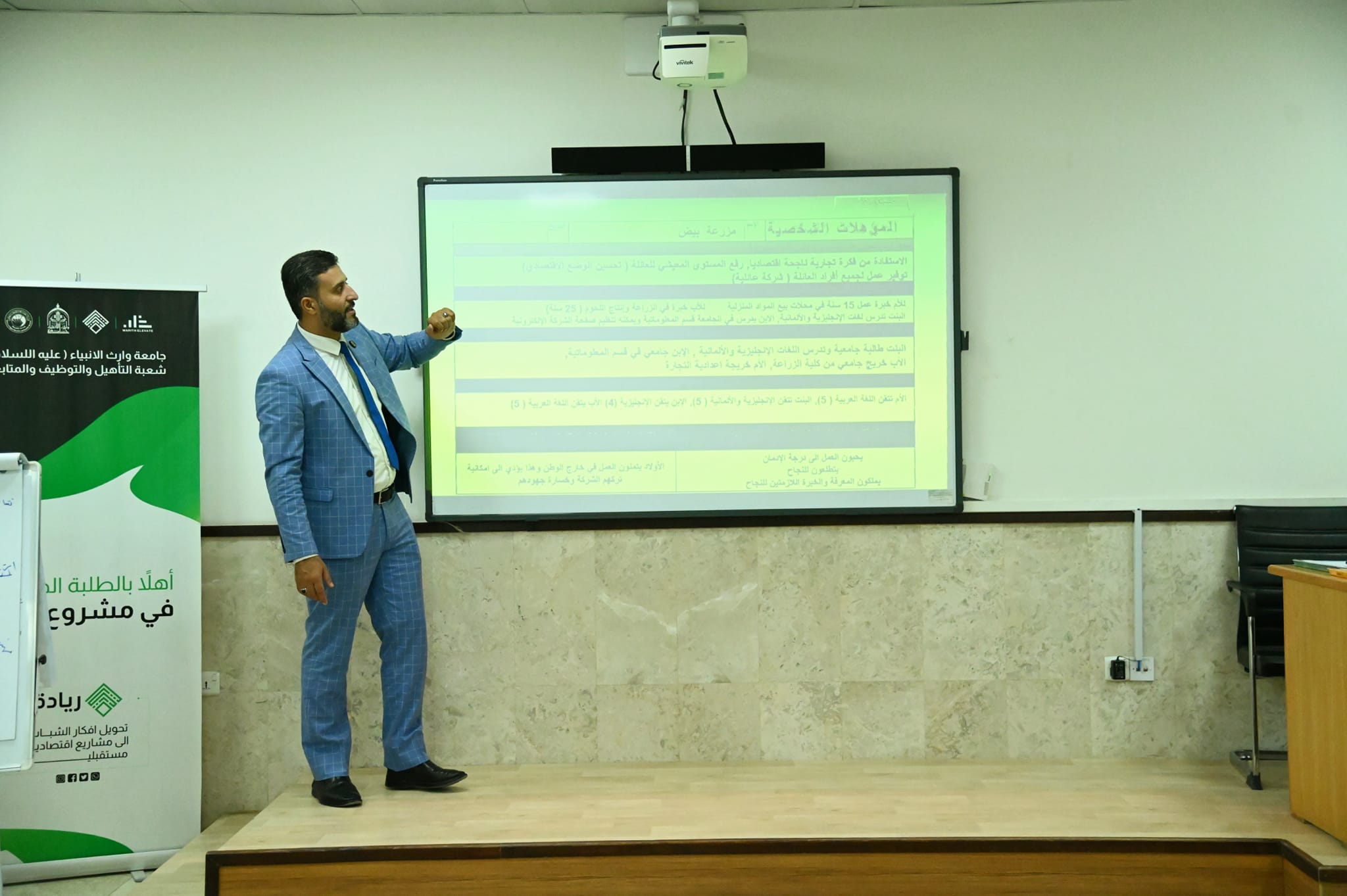 استمرار الدورات التدريبية التي تقيمها جامعة وارث الأنبياء/ شعبة التأهيل والتوظيف ضمن مبادرة"ريادة" الحكومية التي تهدف إلى دعم مشاريع الطلاب والخريجين ،بمشاركة المدرب صفاء السيلاوي، على مدار أسبوعين في الشهر.
