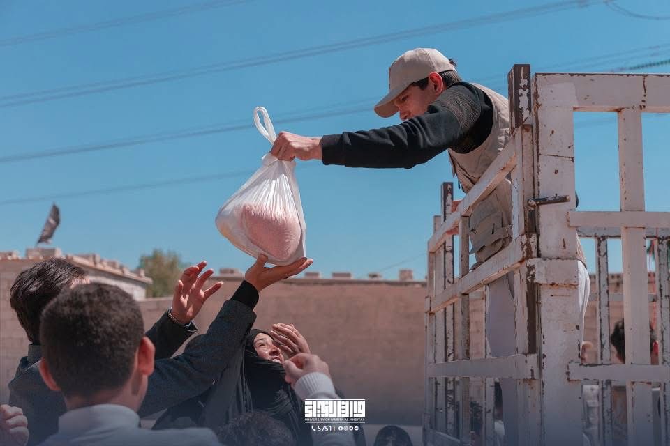 The campaign was organized by the "Irth Al-Hussain" and "Khairat Al-Warith" teams, where students made great efforts in collecting food supplies, preparing food baskets, and coordinating the distribution process. The university directly supervised the initiative, ensuring its support and encouragement for humanitarian efforts.