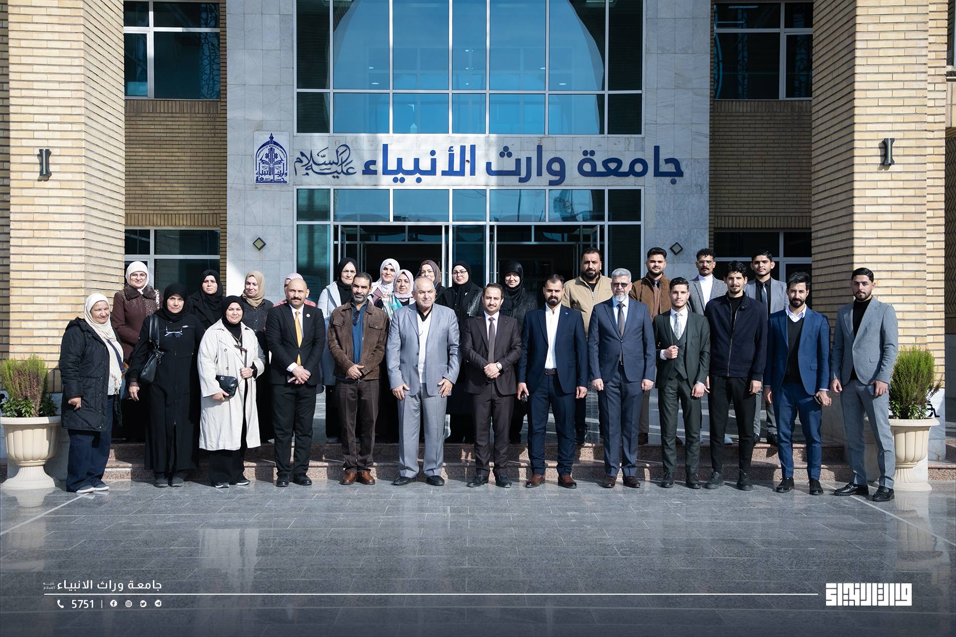 Warith Al-Anbiyaa University received an academic delegation of professors and students from Al-Mustansiriyah University during a scientific visit aimed at strengthening academic cooperation and exchanging scientific expertise between the two institutions.
