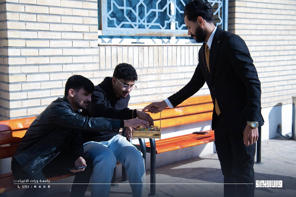 On the occasion of the blessed birth anniversary of Amir Al-Mu’minin Imam Ali ibn Abi Talib (peace be upon him), students of Warith Al-Anbiyaa University (AS) marked the occasion through a meaningful initiative that included distributing sweets and sharing selected quotes and highlights from his noble life across the university campus, aiming to promote his lofty values among the academic community.