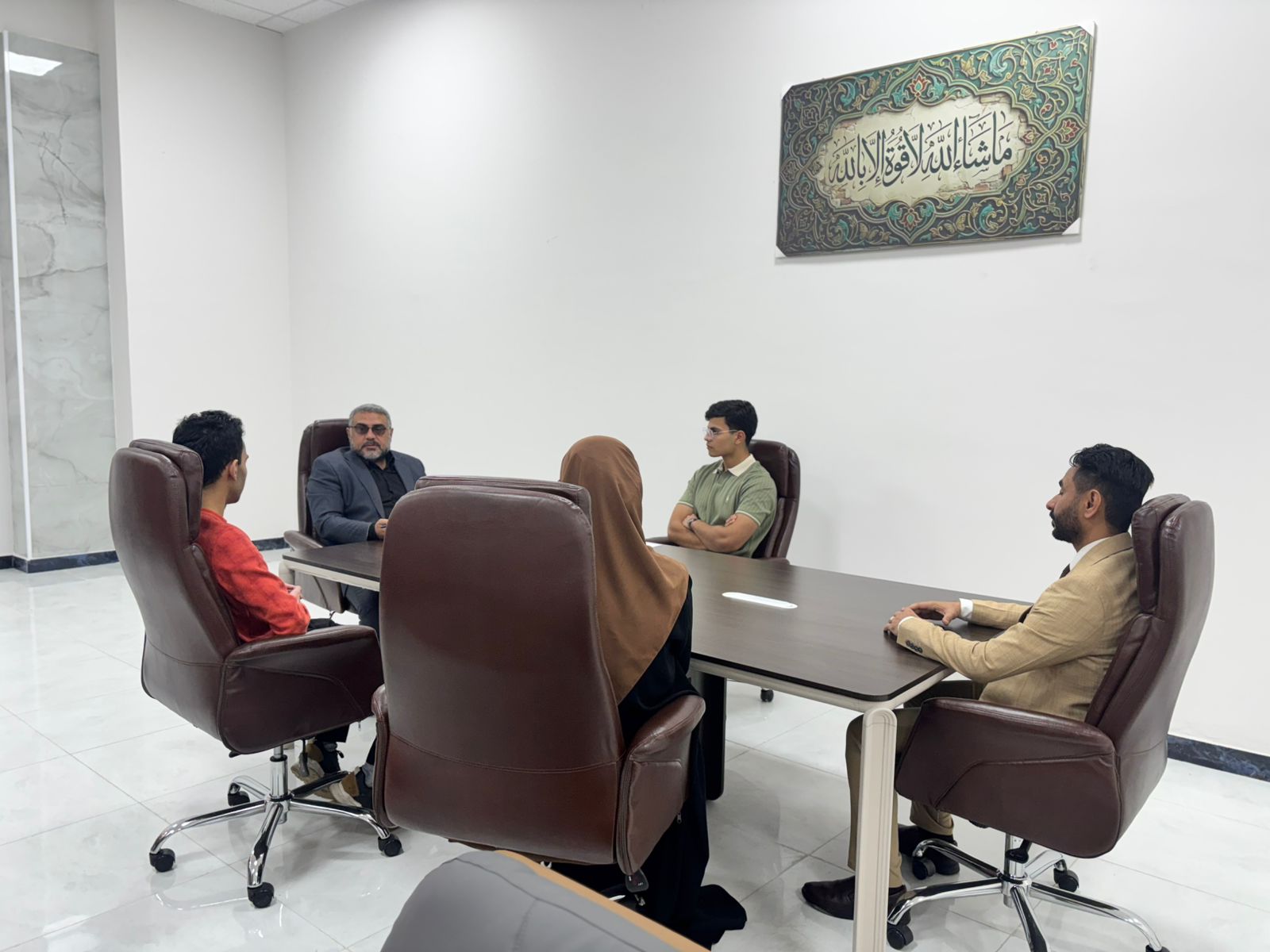Within the framework of field follow-ups on student affairs, the Dean, Assistant Professor Dr. Laith Mohammed Abbas Al-Husseini, held an extensive meeting with first-year student representatives. The meeting, attended by the Head of the Student Affairs Division, Asst. Lect. Ali Aziz Kadhim, aimed to monitor the educational process and guide the academic path of new students.